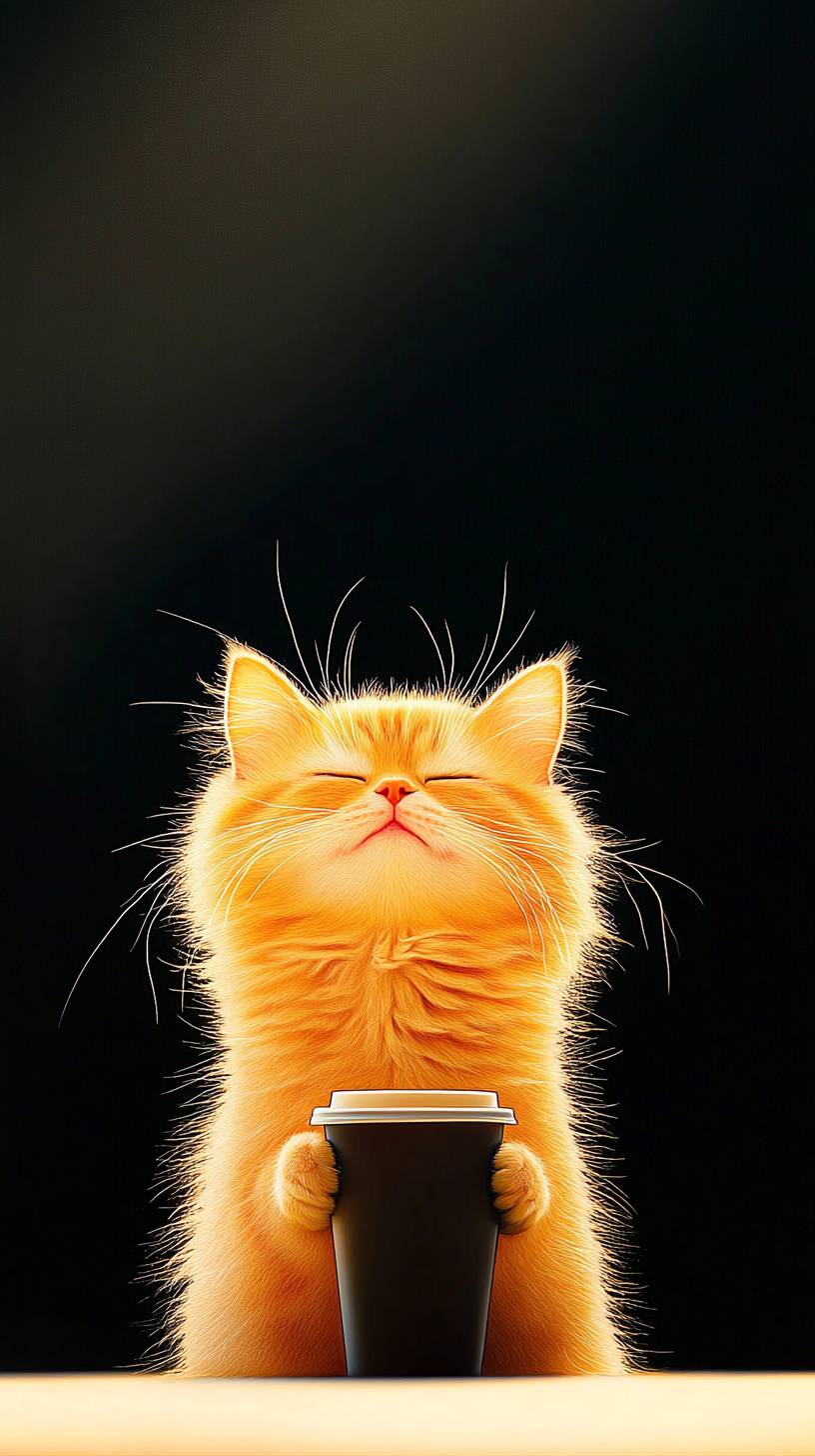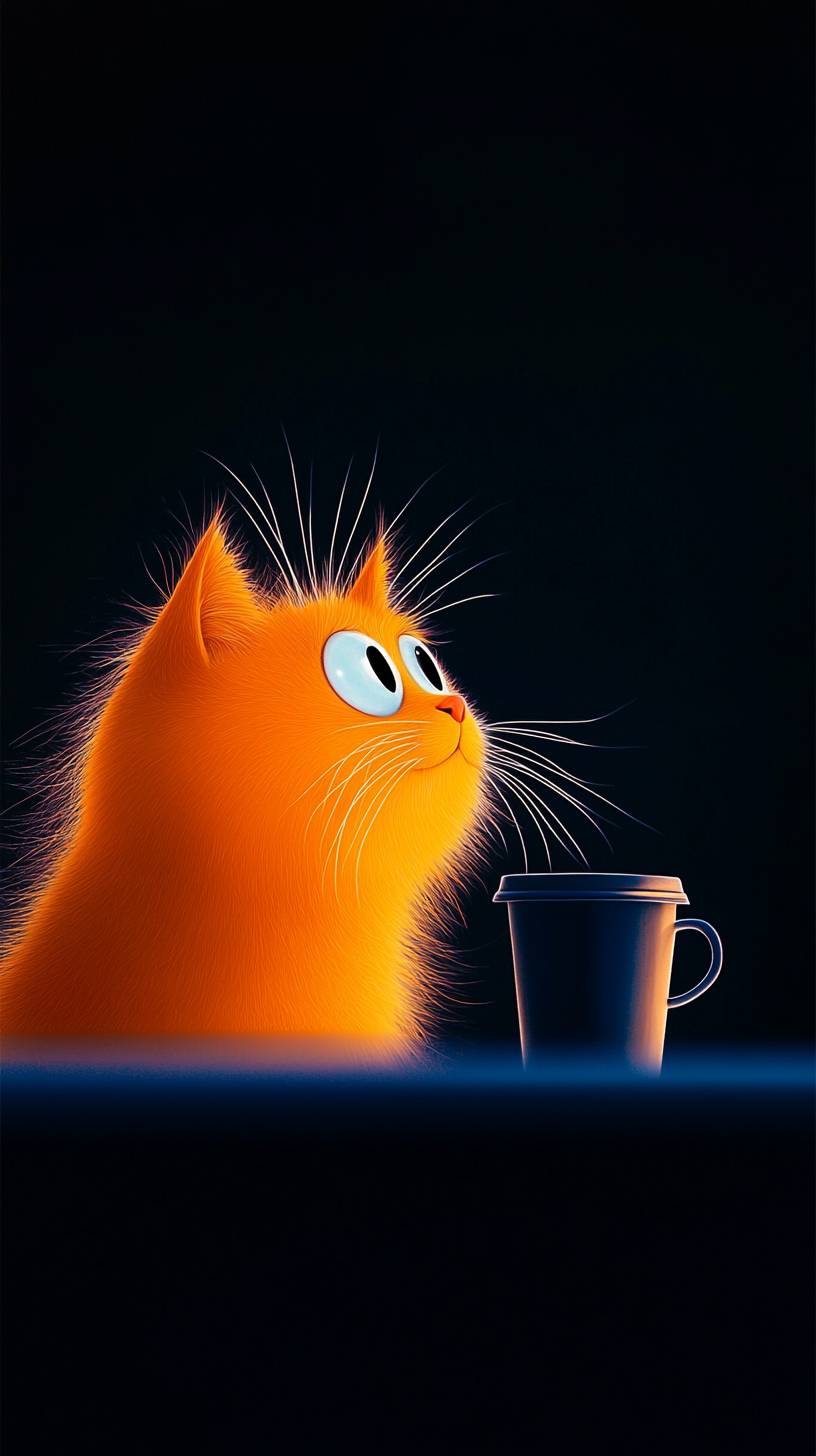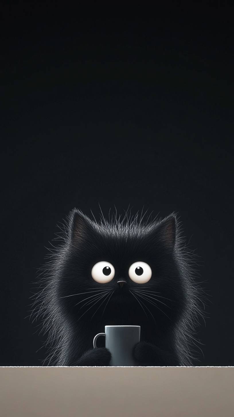 <full-body shot> <low angle shot> <disheveled cat> <caricature style> <holding a coffee cup with a tired expression> <minimalistic black background> <lens bokeh> <soft studio lighting> <in the style of caricature> <colorful> <highly detailed> <rubber> <vintage camera> <depressive> <wet-on-wet painting> <indoors> <golden ratio> <fog> <35-years-old> <pastel> --ar 9:16 --personalize 1yfxvvf --stylize 750 --v 6.1