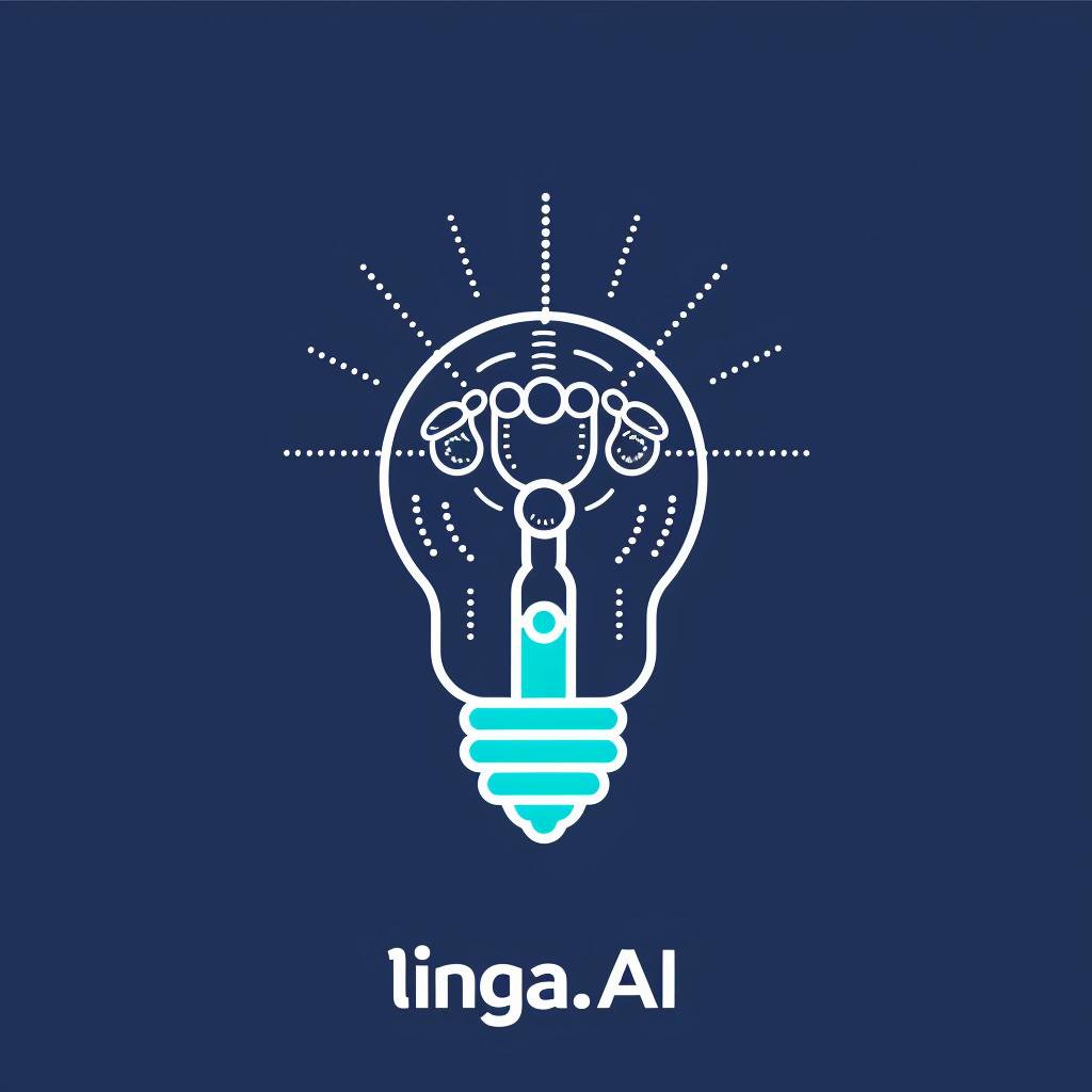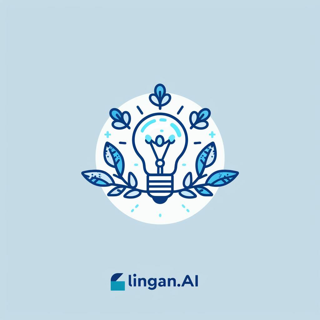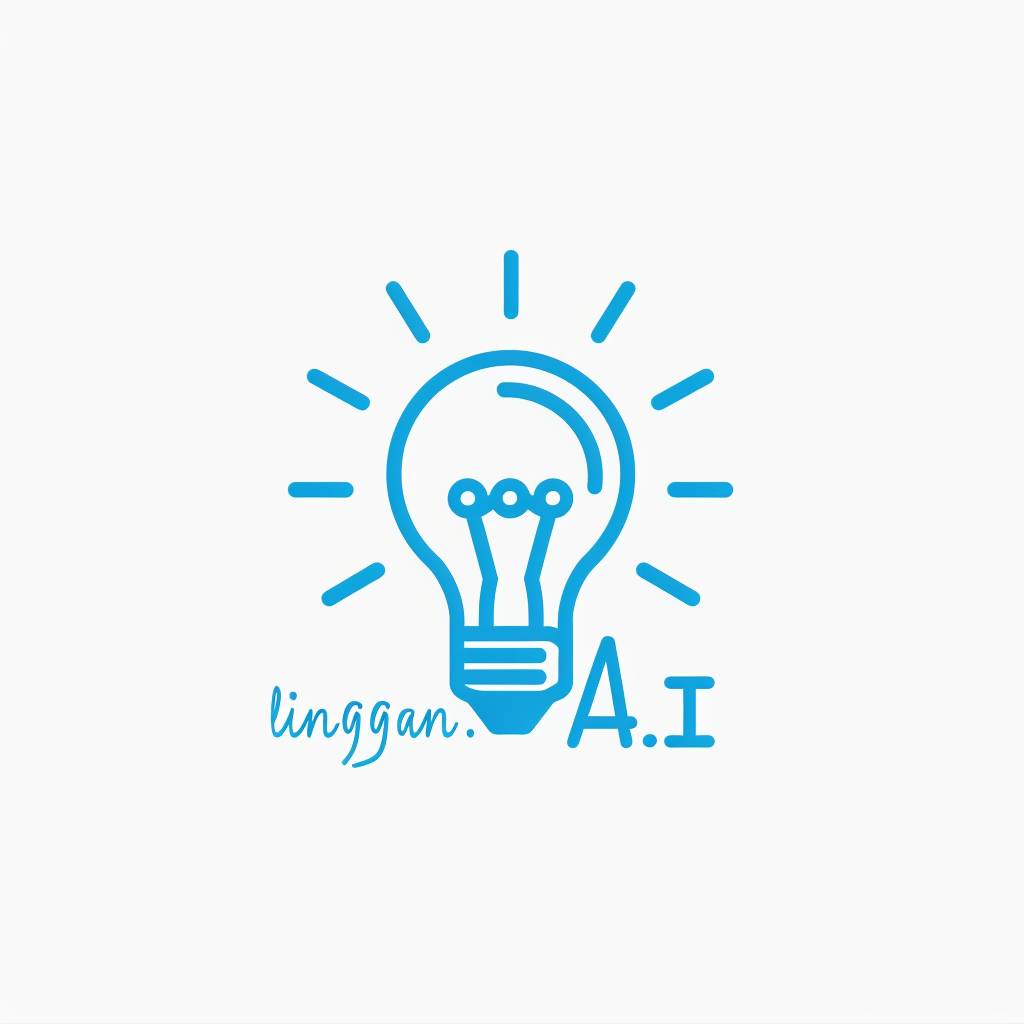 Design a logo for 'linggan.AI' featuring a light bulb to symbolize creativity and learning, using shades of blue for professionalism and trust, while balancing simplicity and visual appeal.