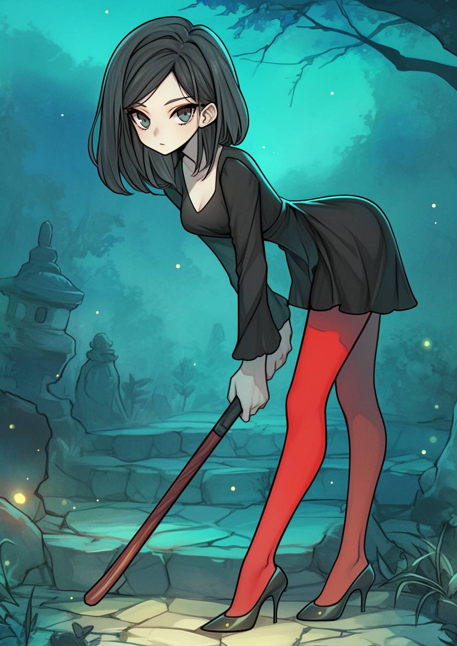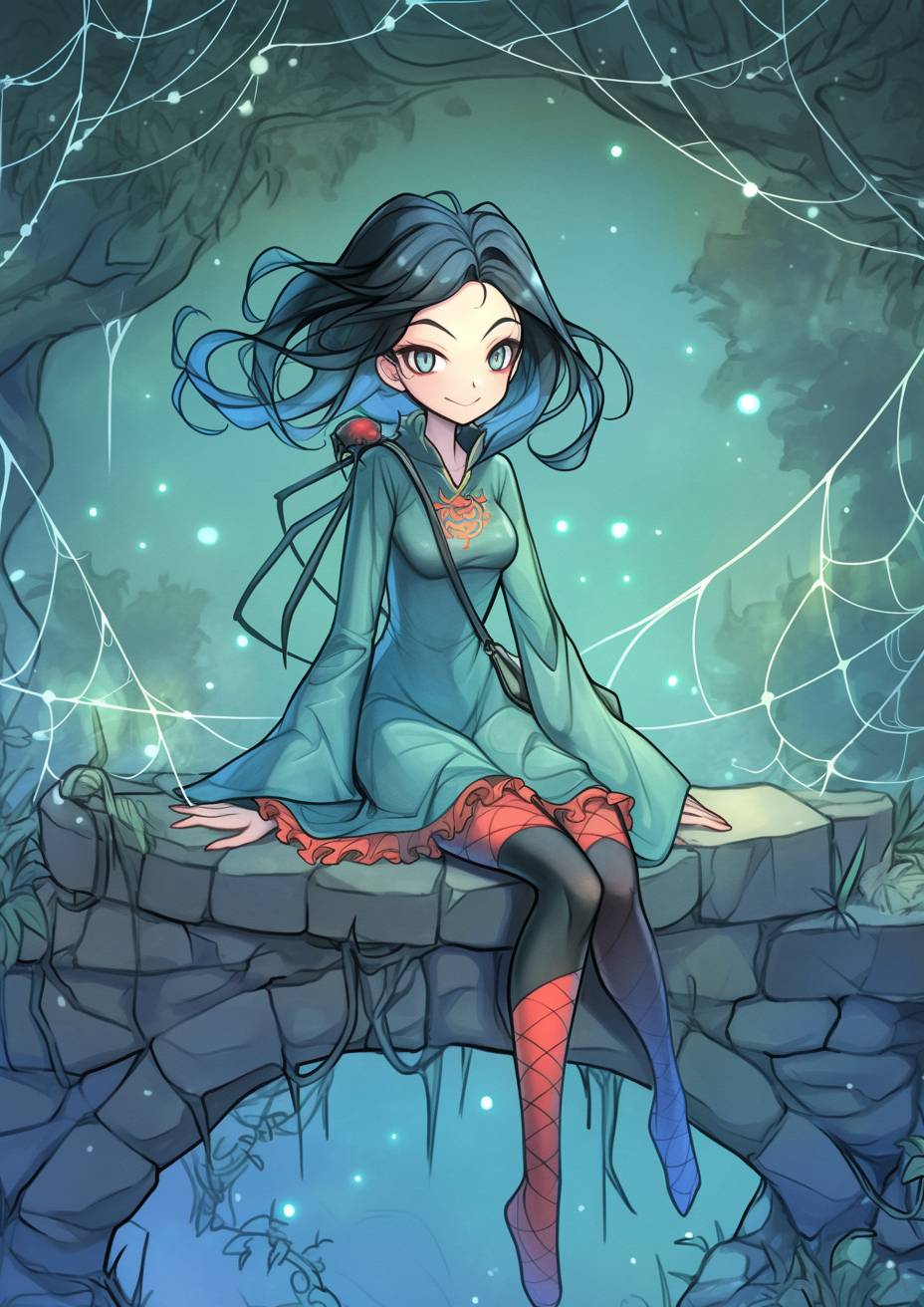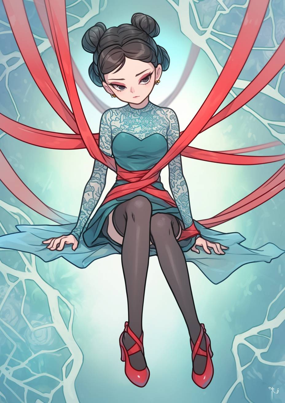 The black widow wearing red socks. --sref 1923618534 --ar 5:7 --niji 6