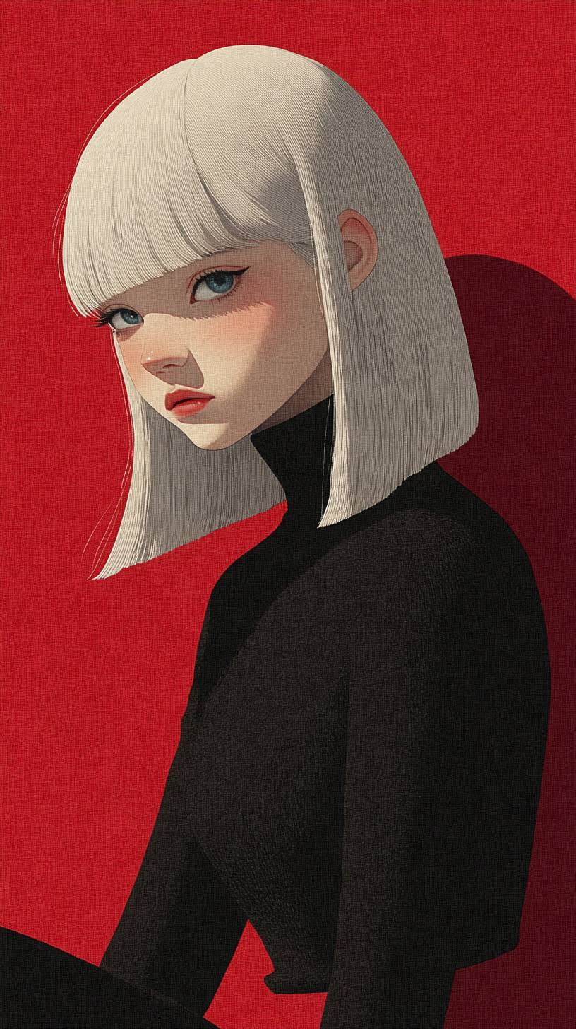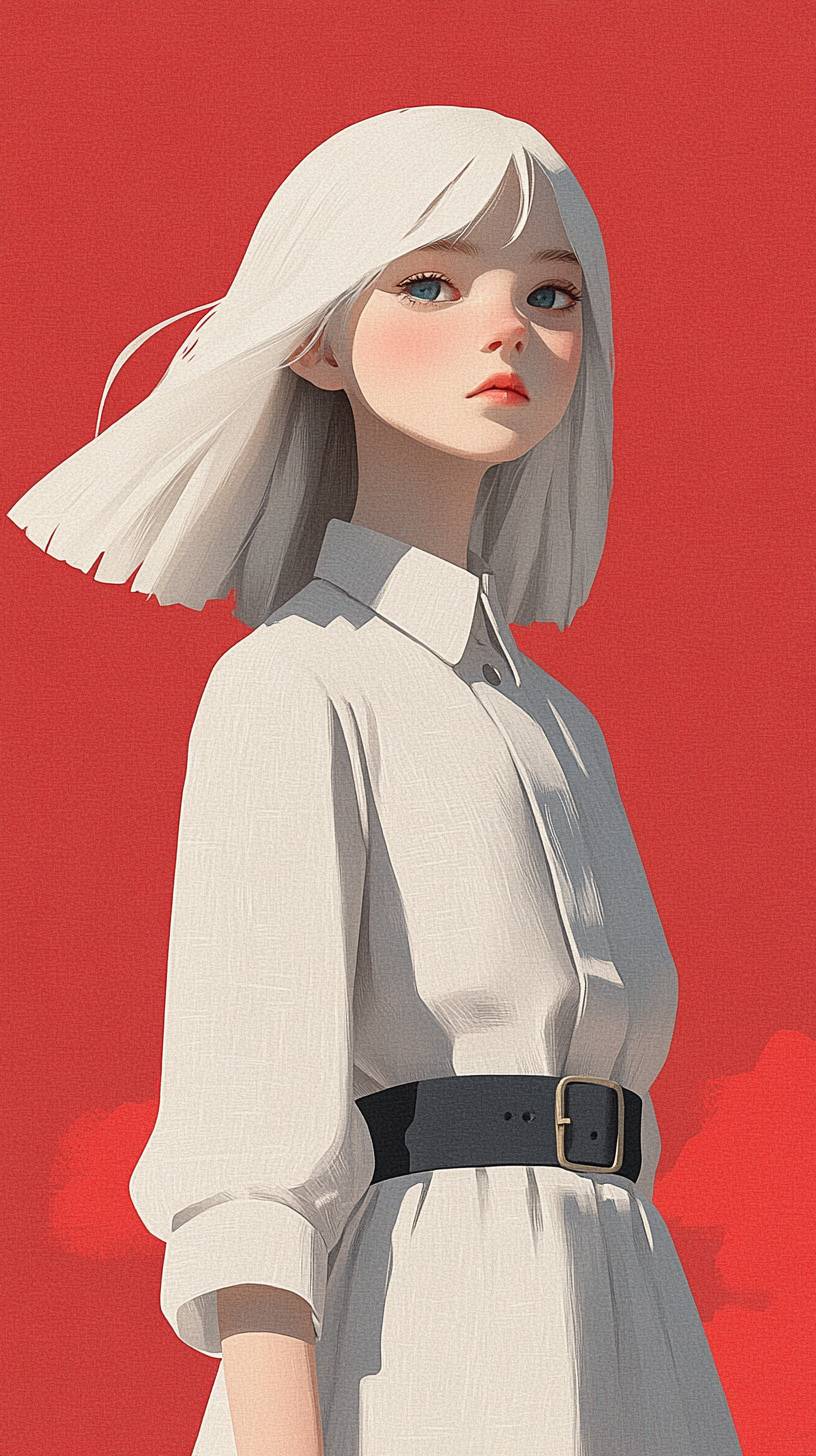 White hair, blue eyes, modern form fitting dress, in the style of anime, in the style of Japanese manga, a cute cartoon girl, with a perfect figure. aesthetic, outline, masterpiece illustration. Akira Toriyama style. --ar 9:16 --style raw --sref 1937454777 --personalize aa9rdg6 216mgih --stylize 400 --v 6.1