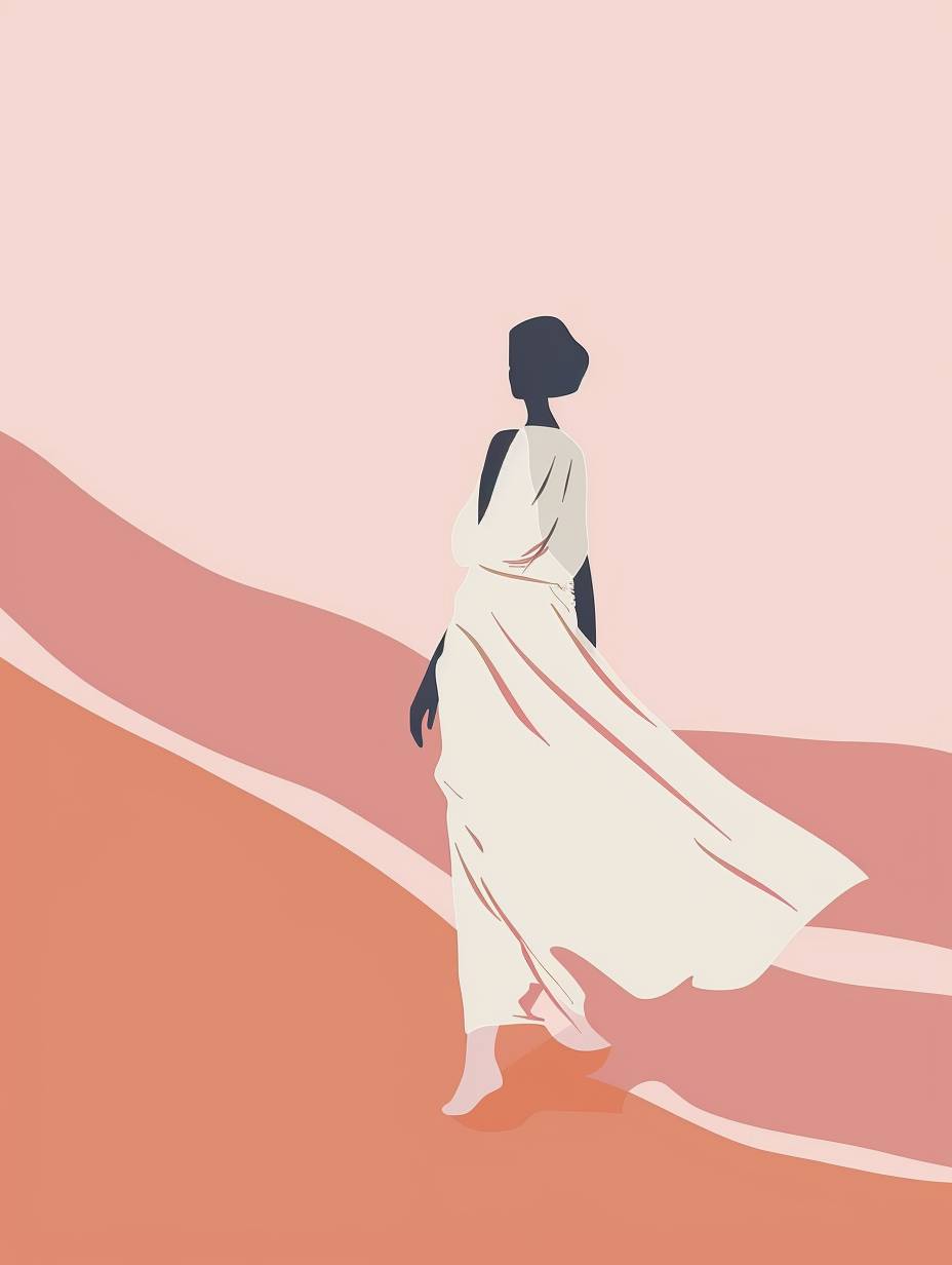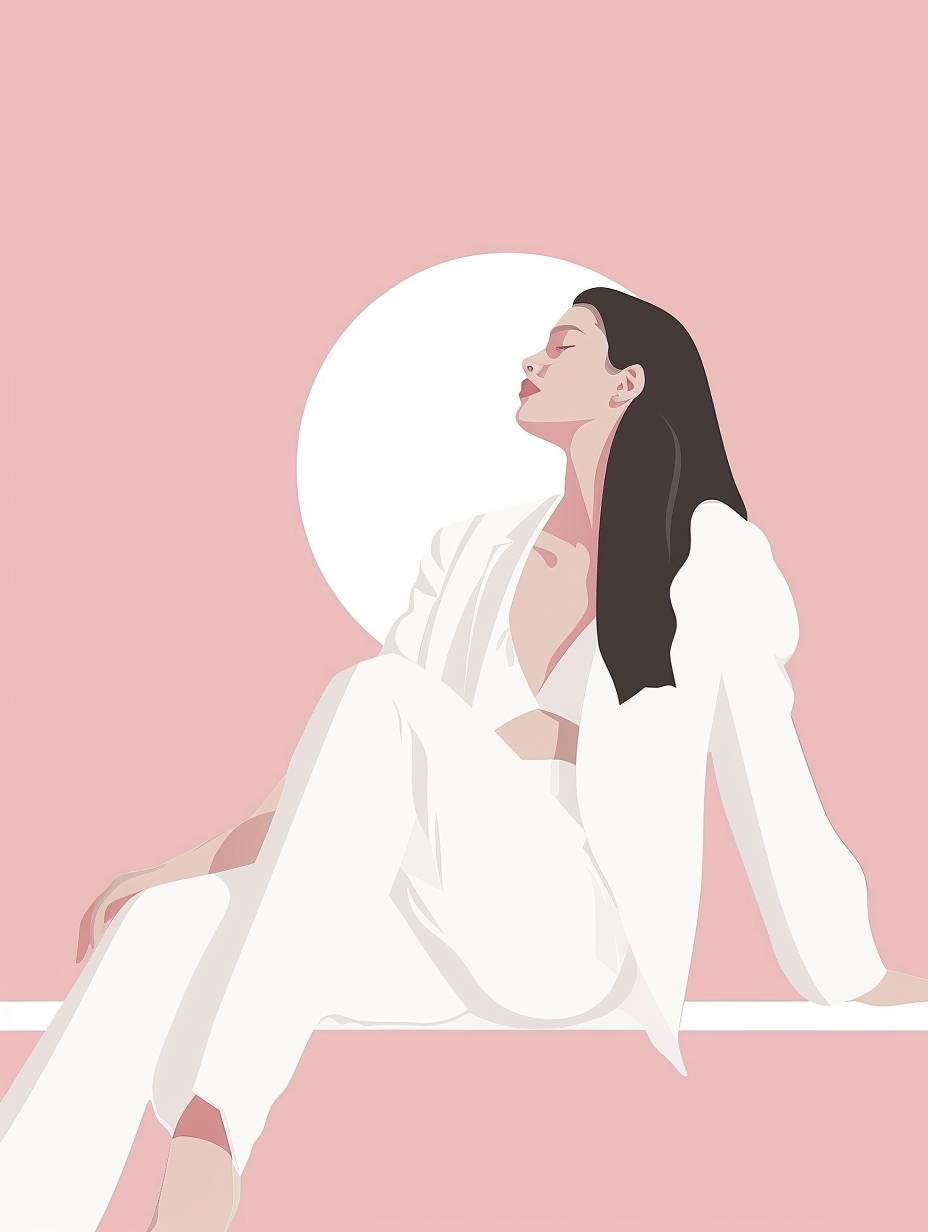 fashion style woman, minimal vector illustration, 3 color combination, soft pink background, simple poster design --ar 3:4 --style raw --stylize 50 --v 6.0