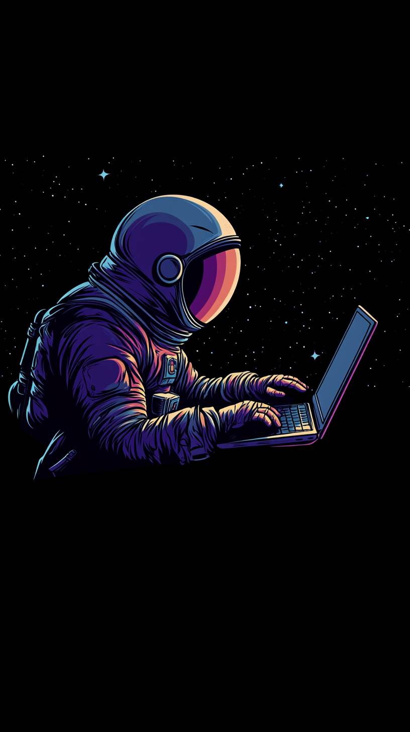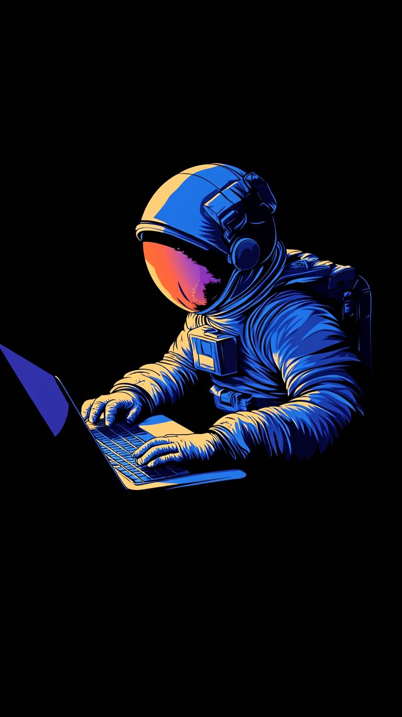 Astronaut typing on a laptop in space, simplistic, black background --v 6.1 --ar 9:16