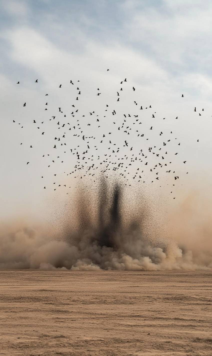 A arte de pólvora de Cai Guo-Qiang no deserto africano com aves