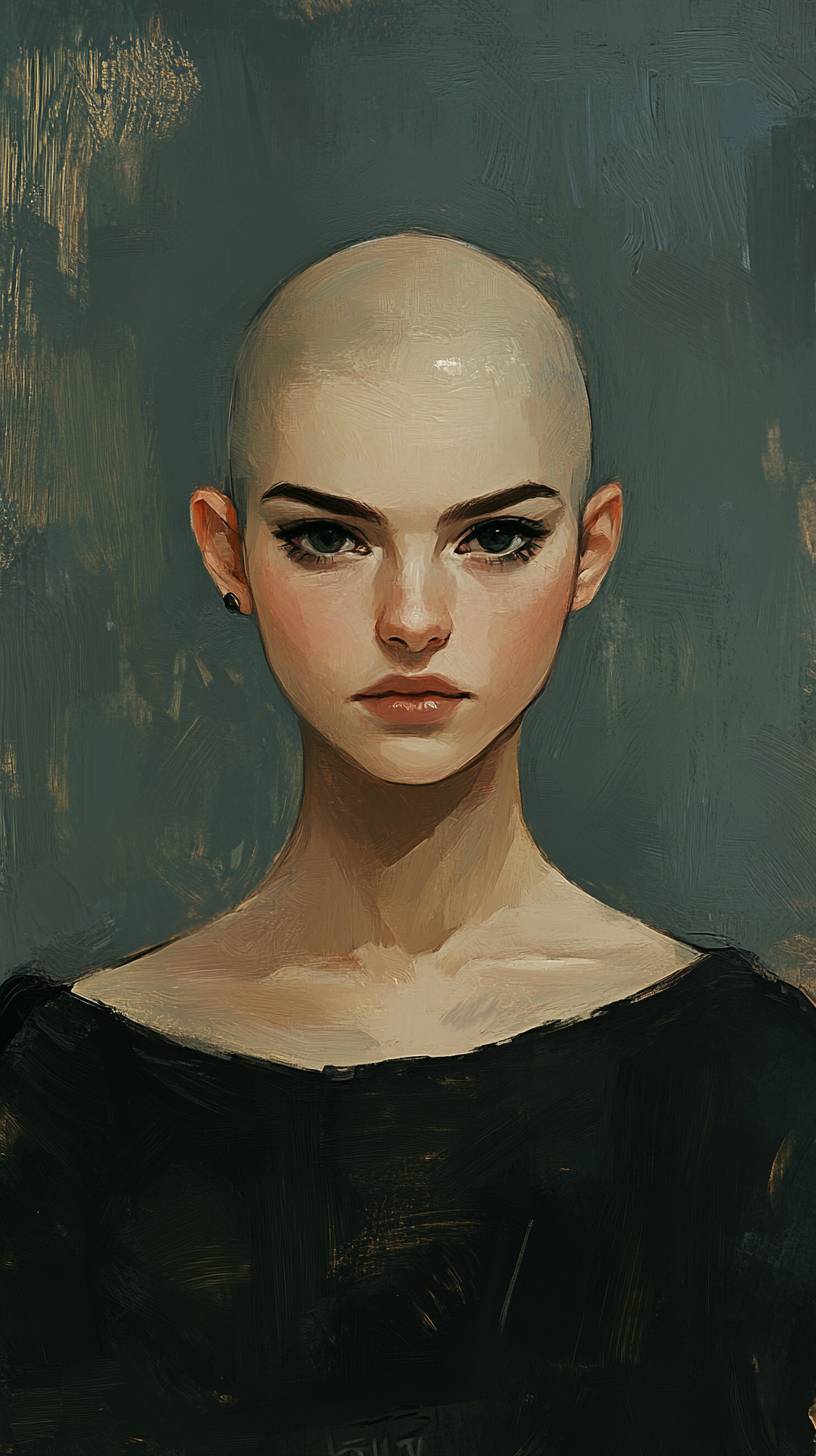 Um retrato de uma mulher careca