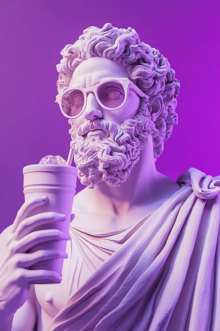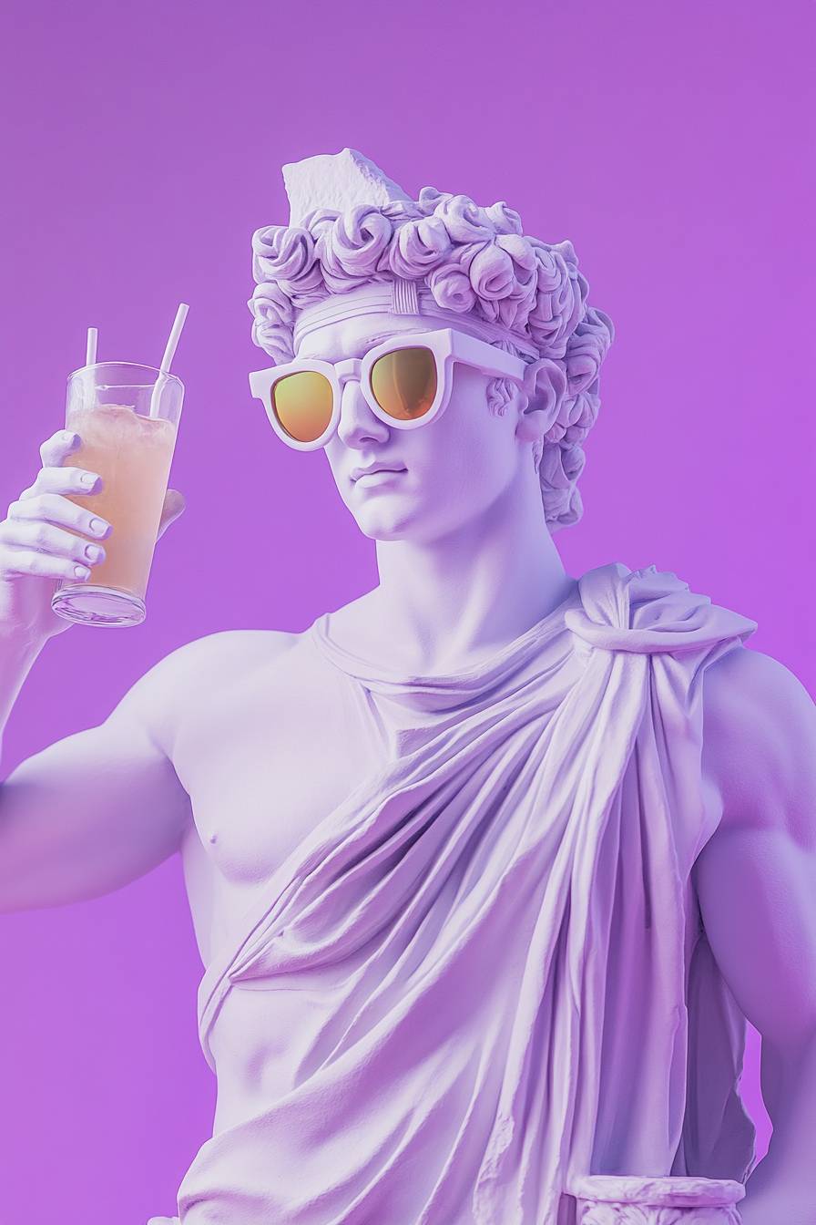 Pôster do deus grego Apolo com óculos e bebida