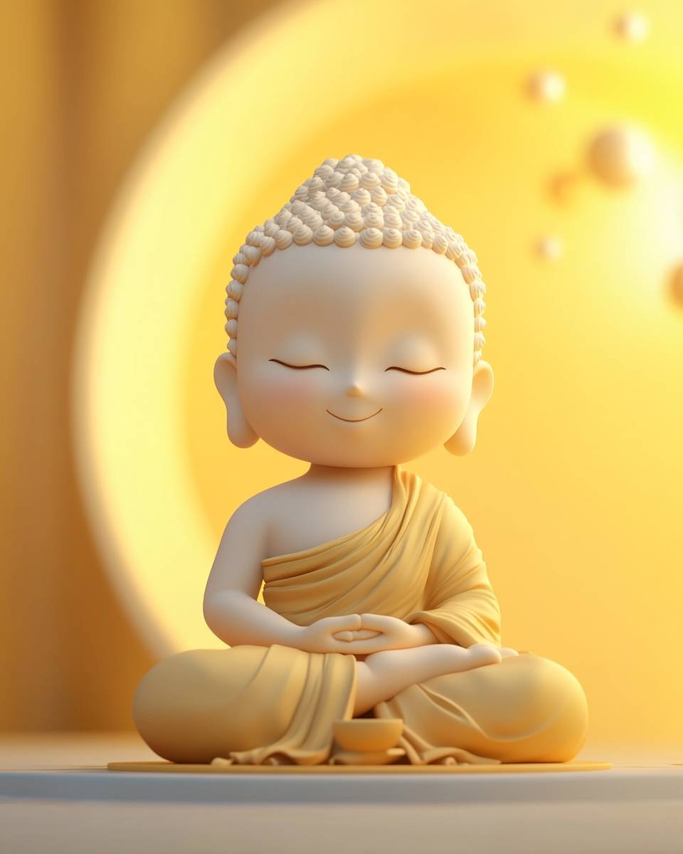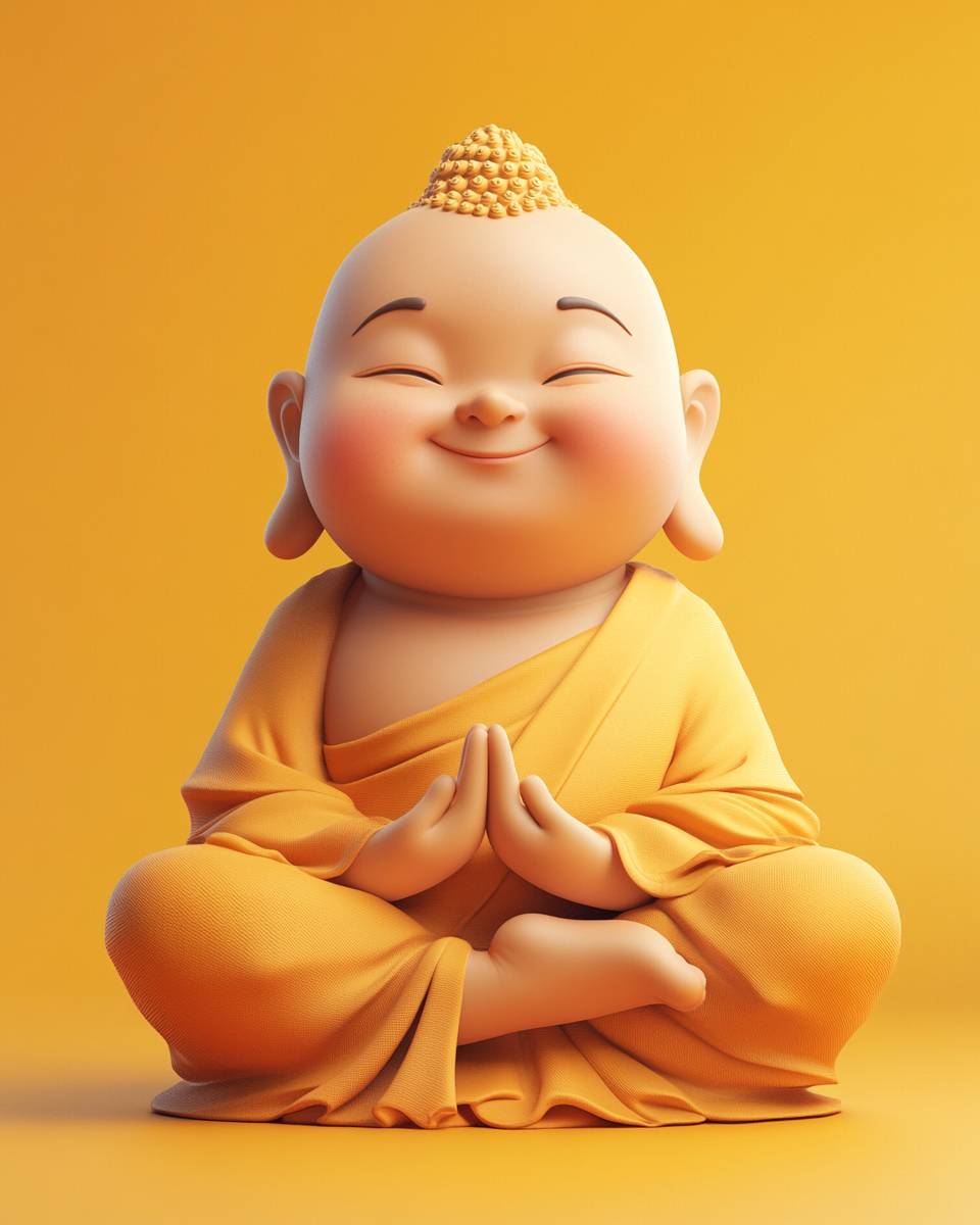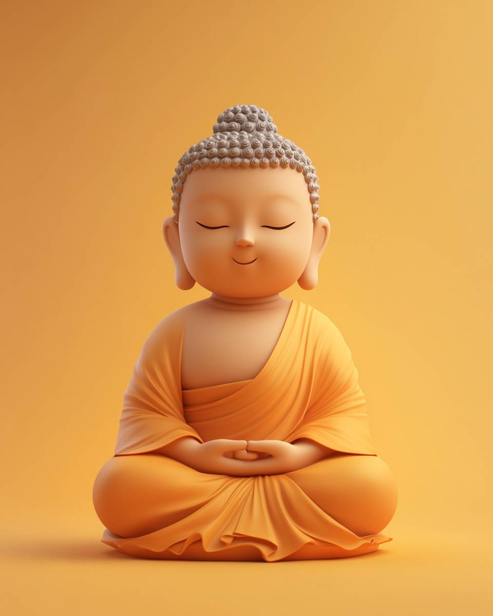 funny modern 3D cartoon character. a Buddha sitting in the center, calm and relaxed, serene expression, no stress. pure and bright color background. --ar 4:5 --v 6.1