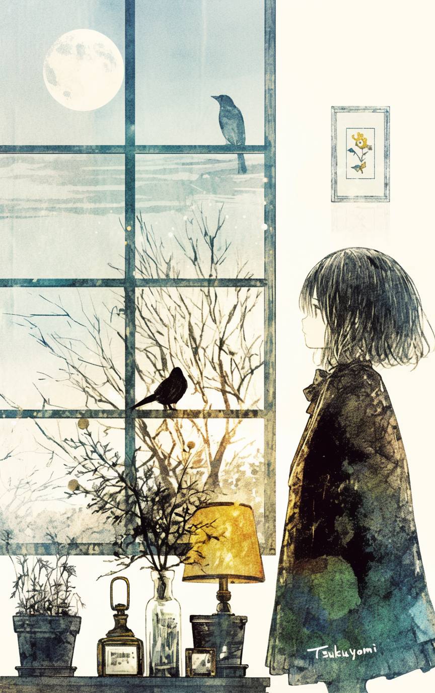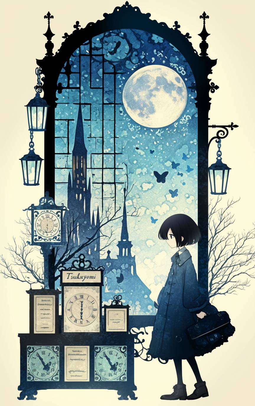 illustration by Lotte Reiniger of The world of shadow art style.::1.5 A cute and stylish room bathed in the soft glow of an beautiful night, where a teenage beauty girl plays the violin. Beautiful Western-style shadow art. Transparent, beautiful gradation colors style, contrast of shadow and light art. The European scene is beautifully detailed and delicate, with a vivid interplay of light and shadow. Dearly beloved atmosphere. The Stylish word "Tsukuyomi" appears in the picture. dreamlike atmosphere. Stylish European art style. the air with an enchanting warmth. Night,moon,stars,Milkyway. The colors are vibrant yet transparent, capturing the essence of the peaceful surroundings, the contrast between light and darkness enhancing the ethereal atmosphere. pixiv. masterpiece. Pixiv. highest quality artwork. high resolution. highly detailed. 8k,16k. uhd.::1 --ar 5:8 --personalize 4mbymid --stylize 375 --niji 6