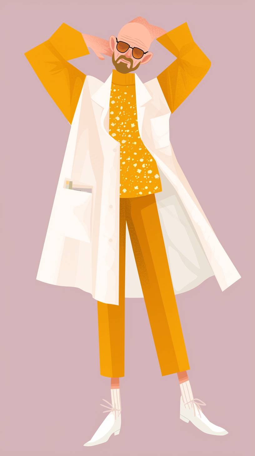 A simple drawing of Walter White, in the style of Allie Brosh with simple lines, flat colors and a stick figure, minimalistic, simple background --ar 9:16 --style raw --sref 256639353 --niji 6