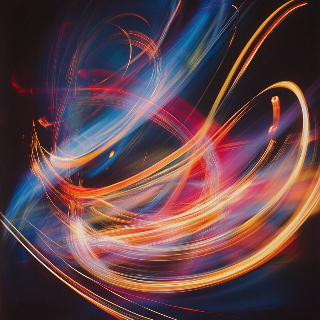 Cosmic contours, abstract light trails, angular, avant-garde shapes, creating kinetic motion with chromatic aberrations
