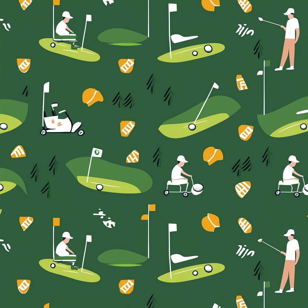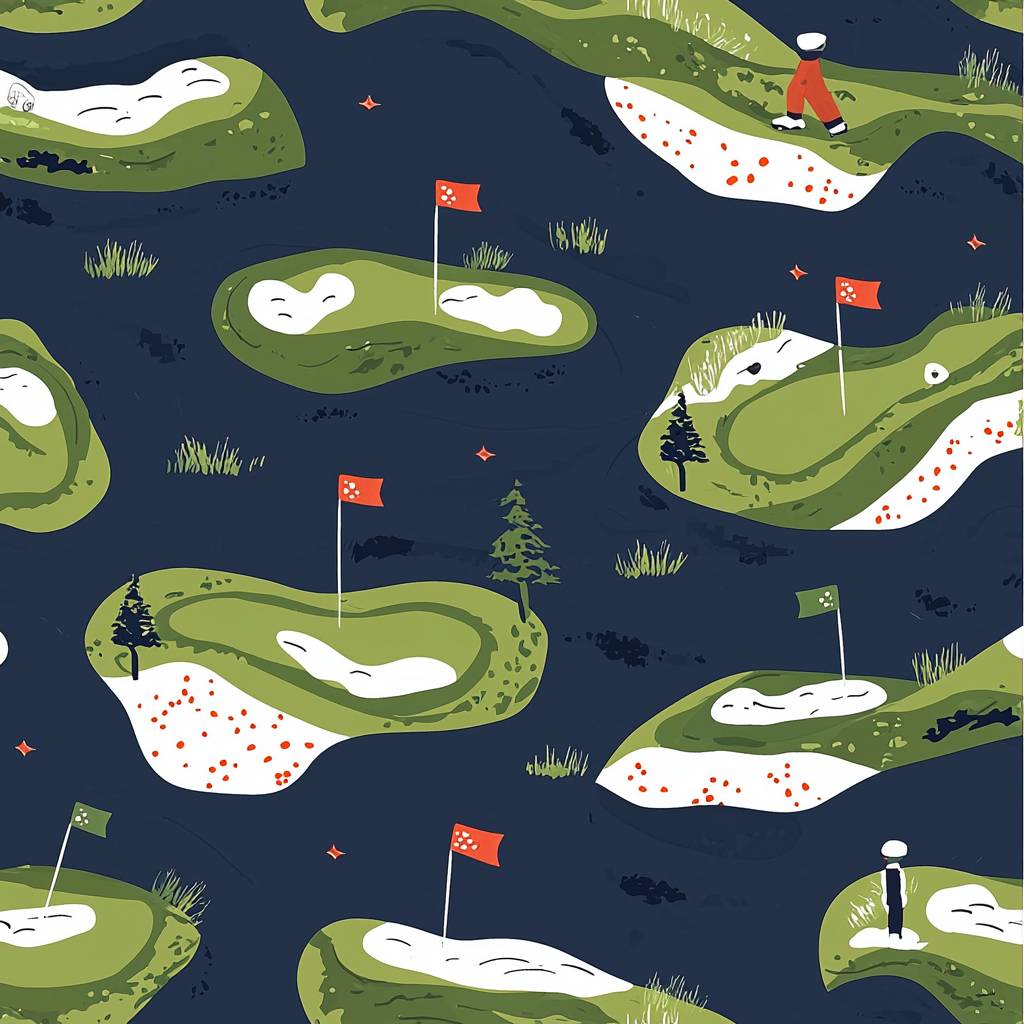 2d flat clip art style::2 Seamless pattern for a golf polo in a line art/doodle style. 'Links Golf' theme featuring natural elements like ocean cliffs, waves, and wind. Include a alone pine tree::3 golf flags and subtle golf-related icons like a golfer and crossed golf carts. The overall design should blend into a repeating pattern without any element overpowering the rest, with minimal detail and a cohesive, Golf feild atmosphere::5 intricate::1 --quality 2 --stylize 50 --v 6.1