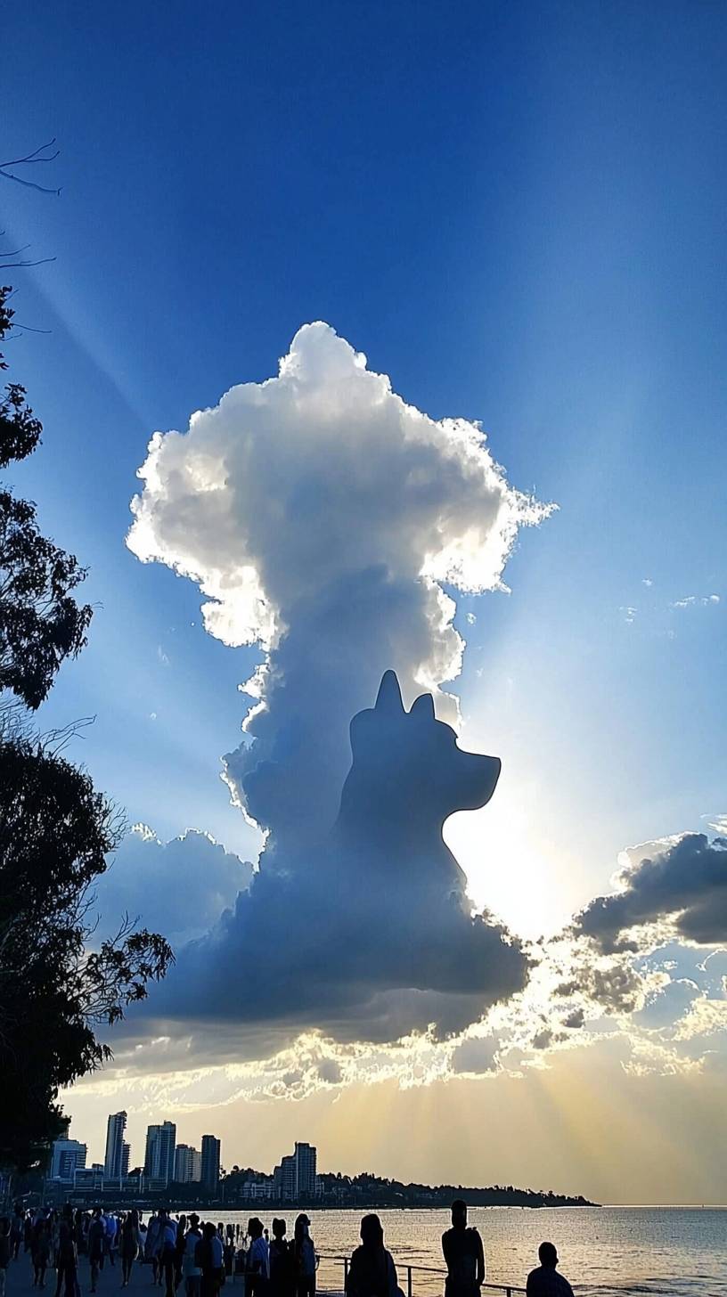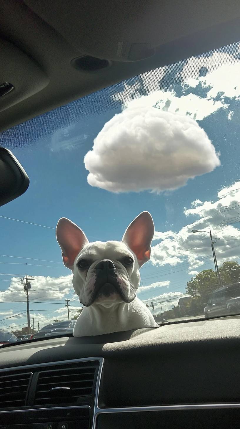 There was a very big cloud in the sky. The cloud was shaped like a cute Boston terrier dog --ar 9:16 --quality 2 --style raw --stylize 50 --v 6.1