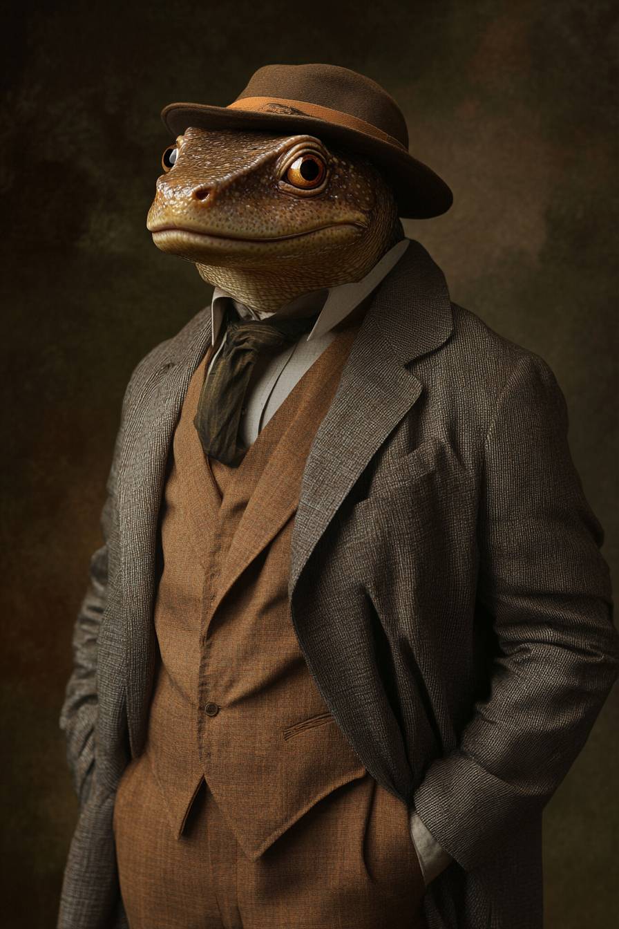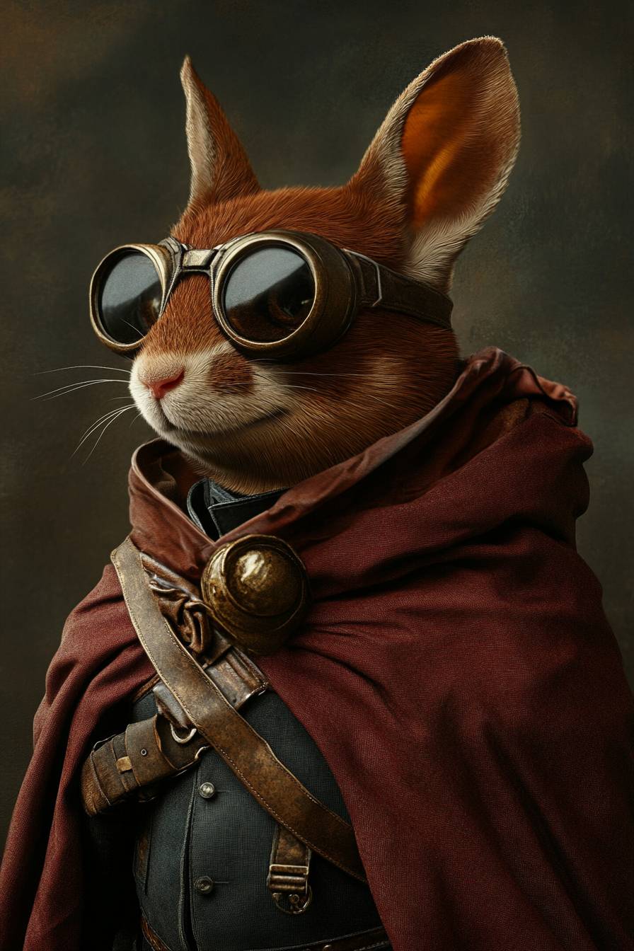 Um animal antropomórfico vestido como um personagem de quadrinhos