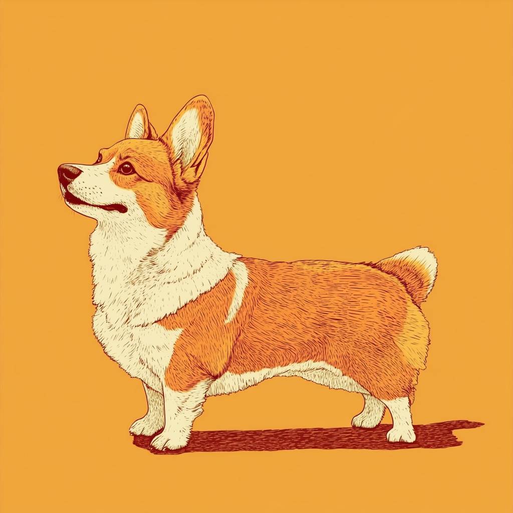 simple Corgi illustation showing its personality, the Corgi must be a single colour that is only orange, it must be 2d and a side view and show the full corgie, the dog must be standing tall on all 4 legs --v 6.1