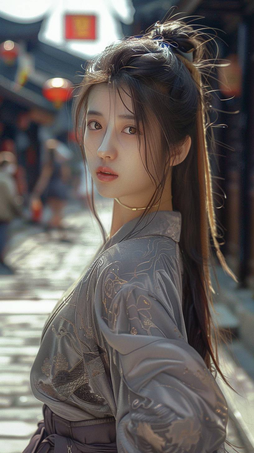 realistic photo, a chinese girl in modern street --ar 9:16 --v 6.0