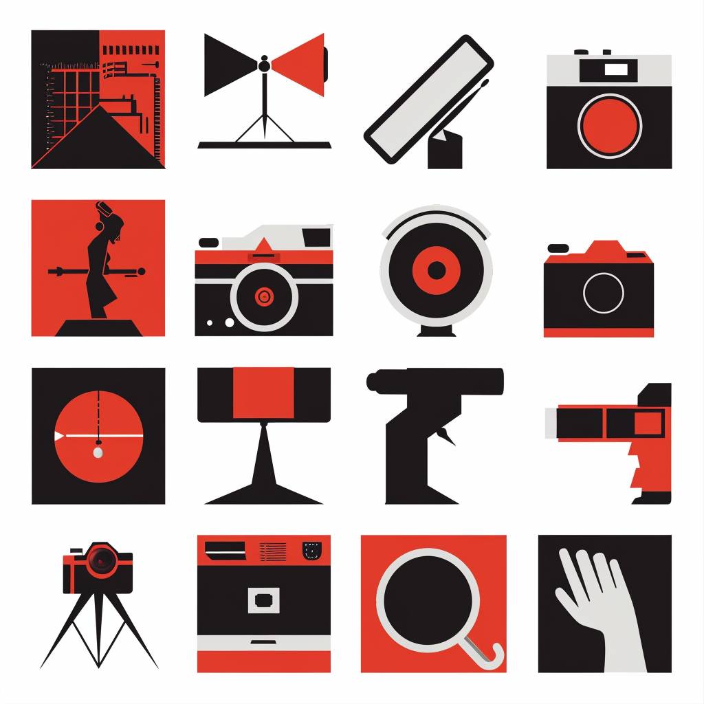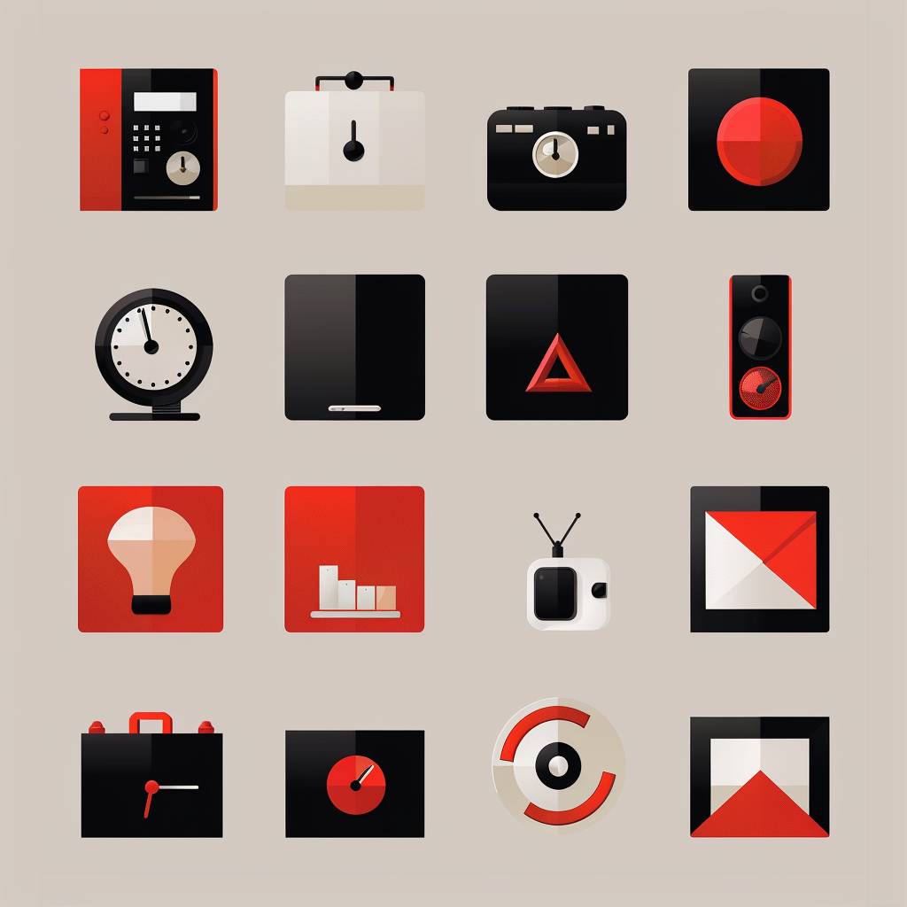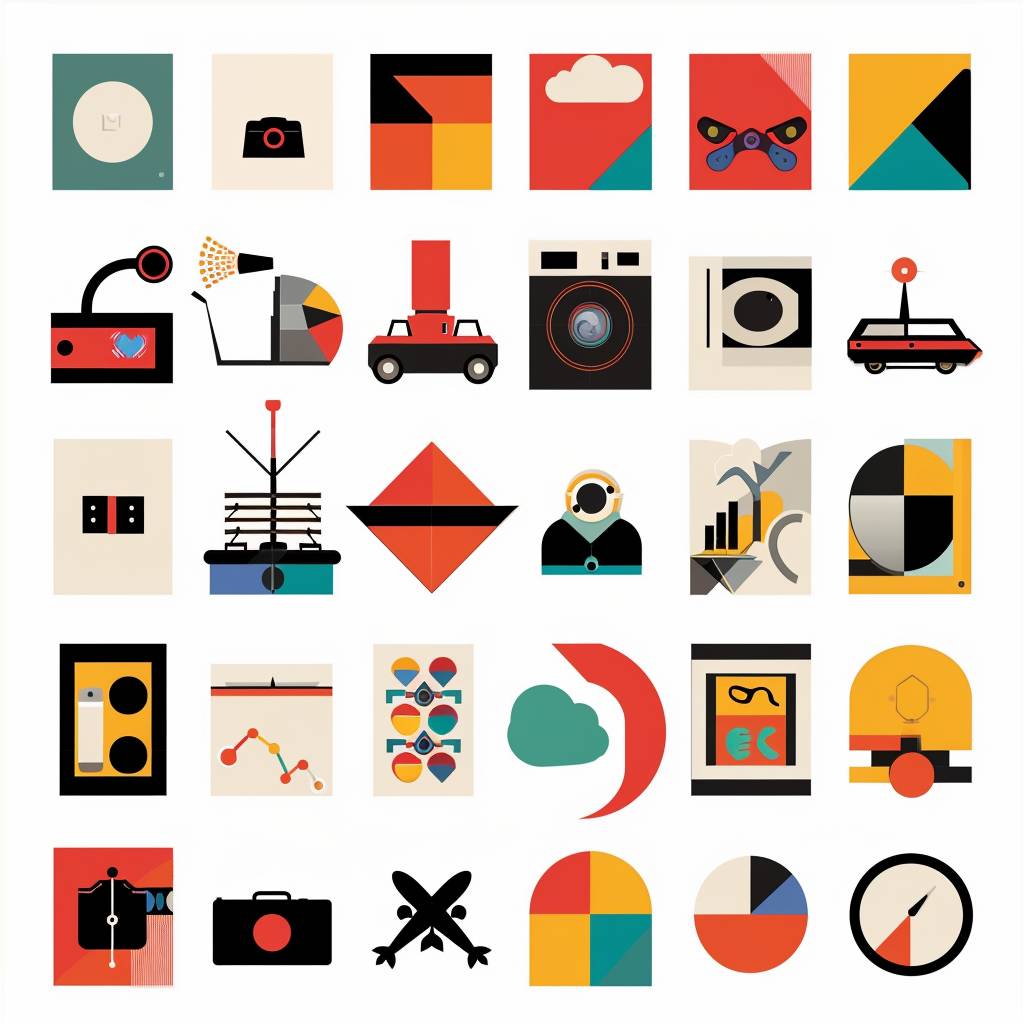 Design de um conjunto de ícones vetoriais de Massimo Vignelli para uma agência de marketing.