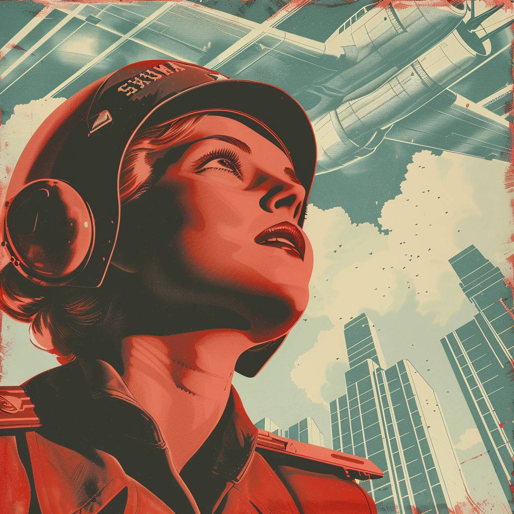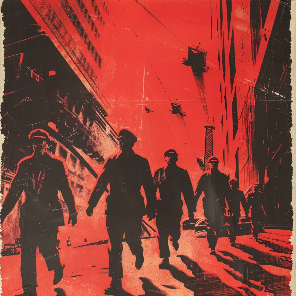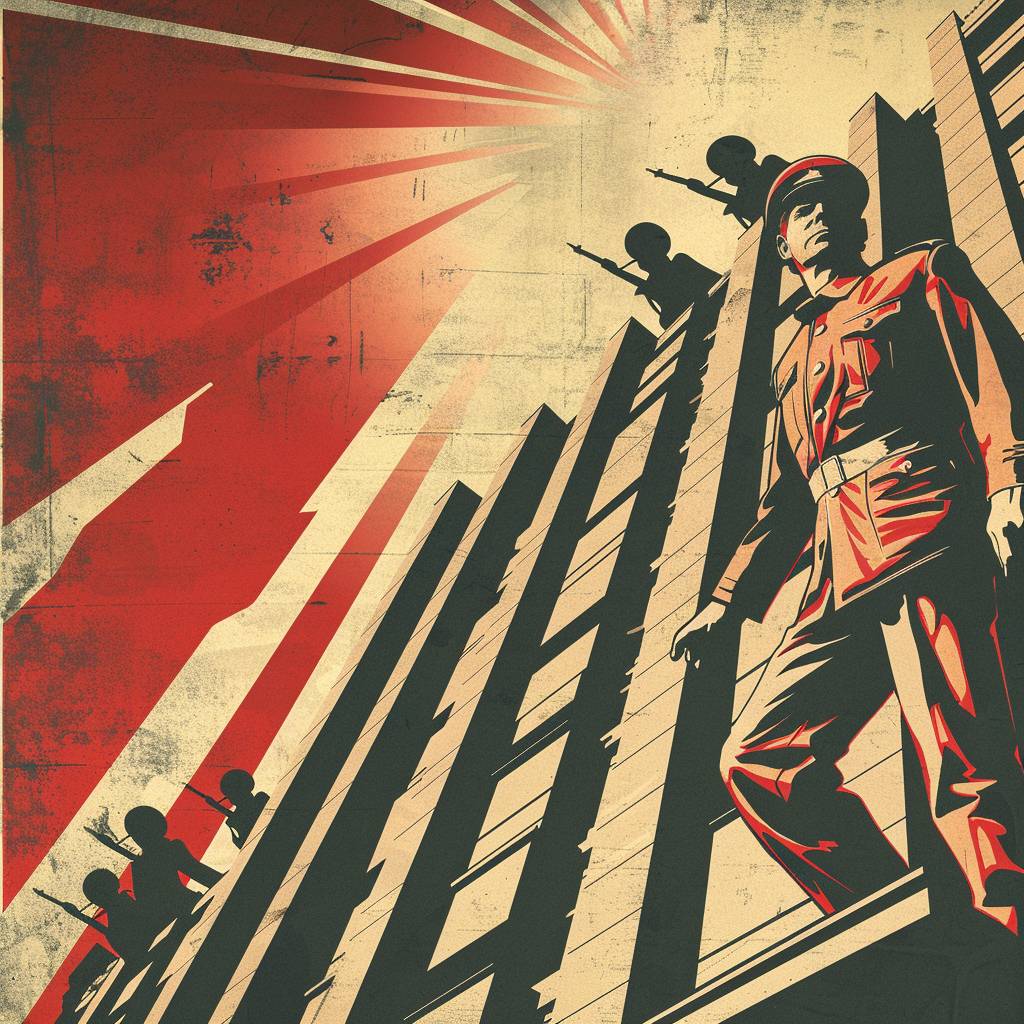 Pôster de propaganda brutalista dos anos 30 em cores duotônicas