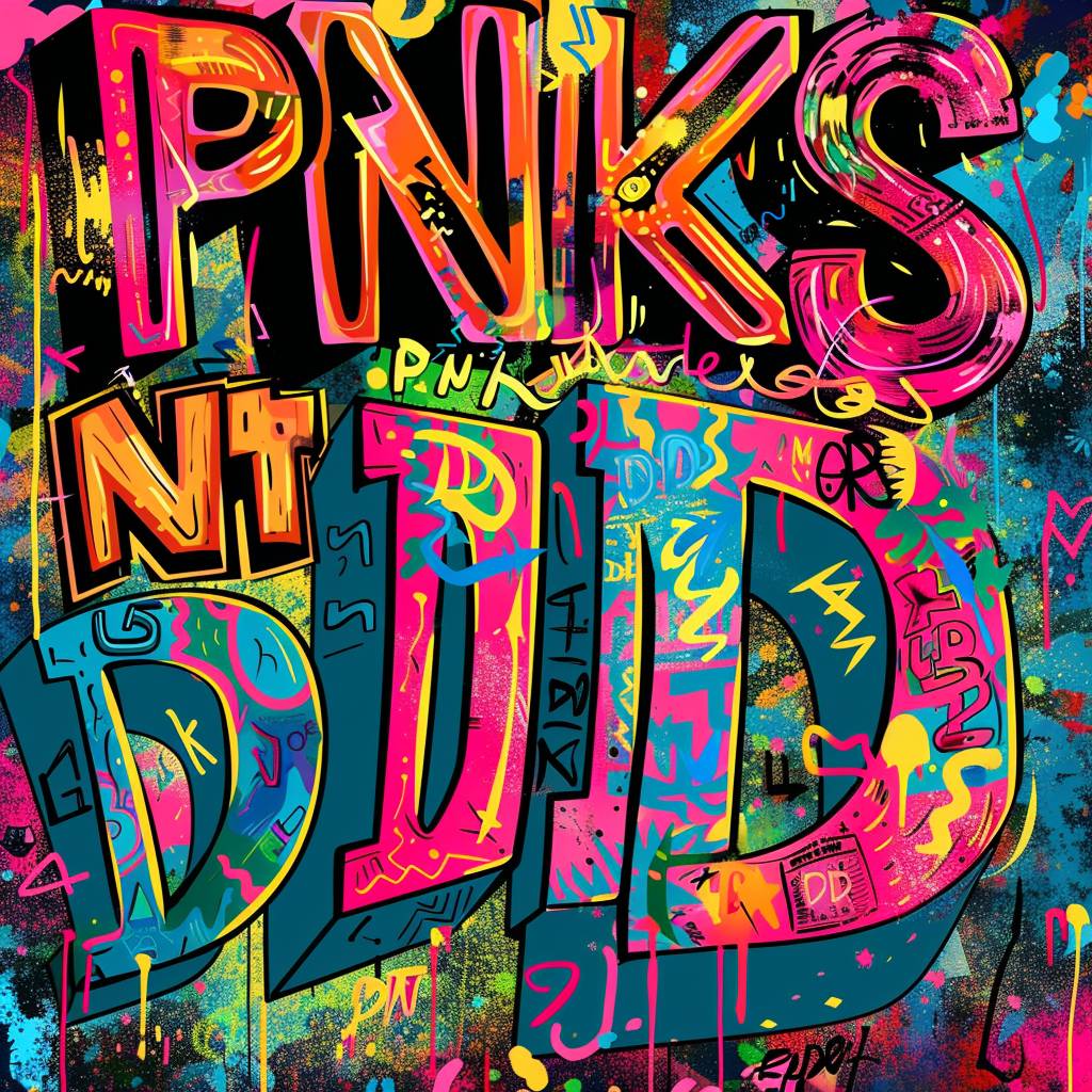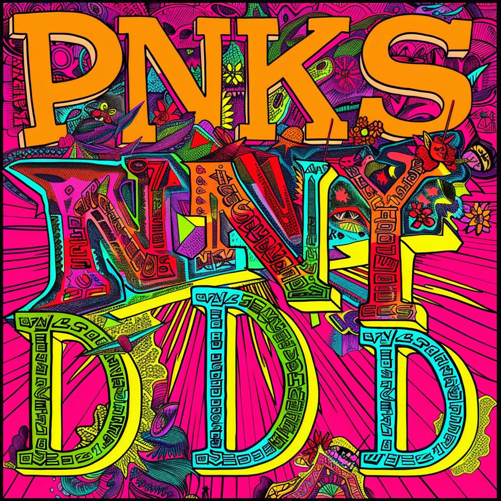 Pôster de PSY punk com o texto 'PNKS NT DD' em letras grandes e cores psicodélicas.
