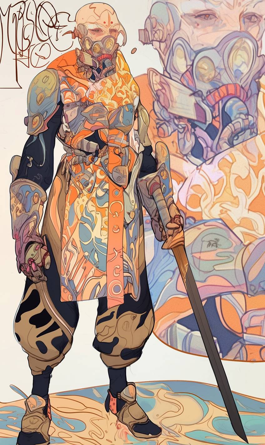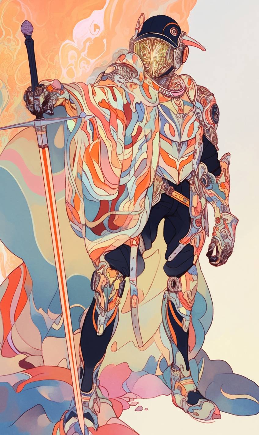 Design de personagem de arte conceitual de um cavaleiro a vapor retropunk