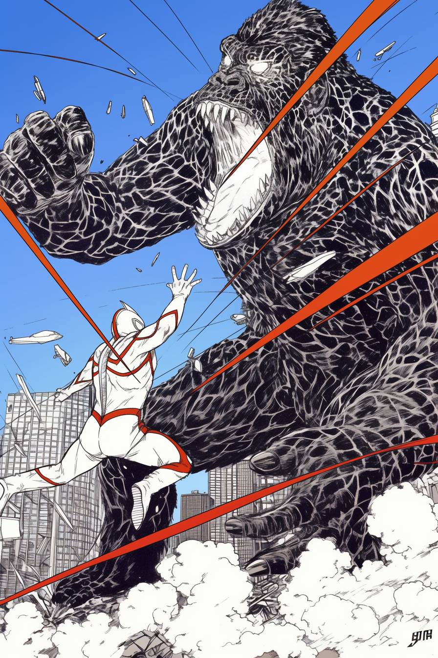 Ultraman vs. King Kong. --sref 4135266287 --ar 2:3 --niji 6