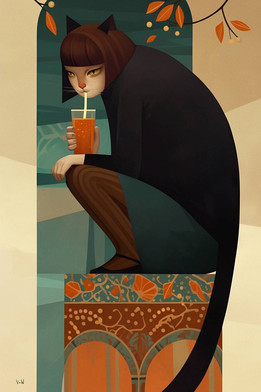 Fat cat drinks cola --sref 3866697265 --niji 6 --ar 2:3