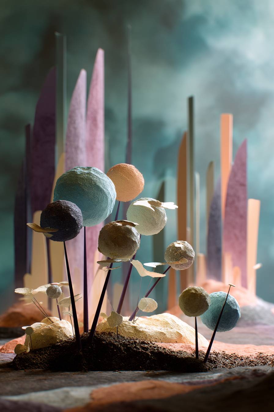 Uma peça de estilo claymation que exibe textura artesanal e estilo natural.