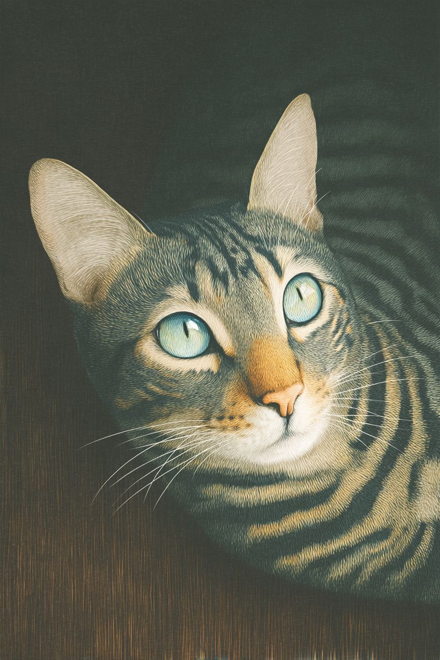Lovely cat. --chaos 25 --ar 2:3 --sref 3320822815 --profile 4d36t2k --sv 4 --sw 1000 --stylize 1000 --weird 100 --v 7.0 --raw