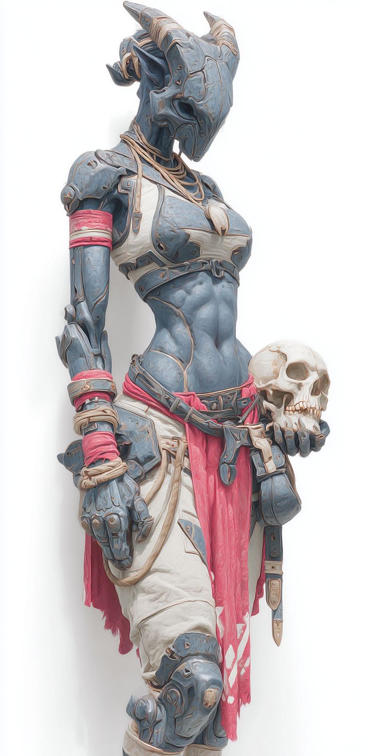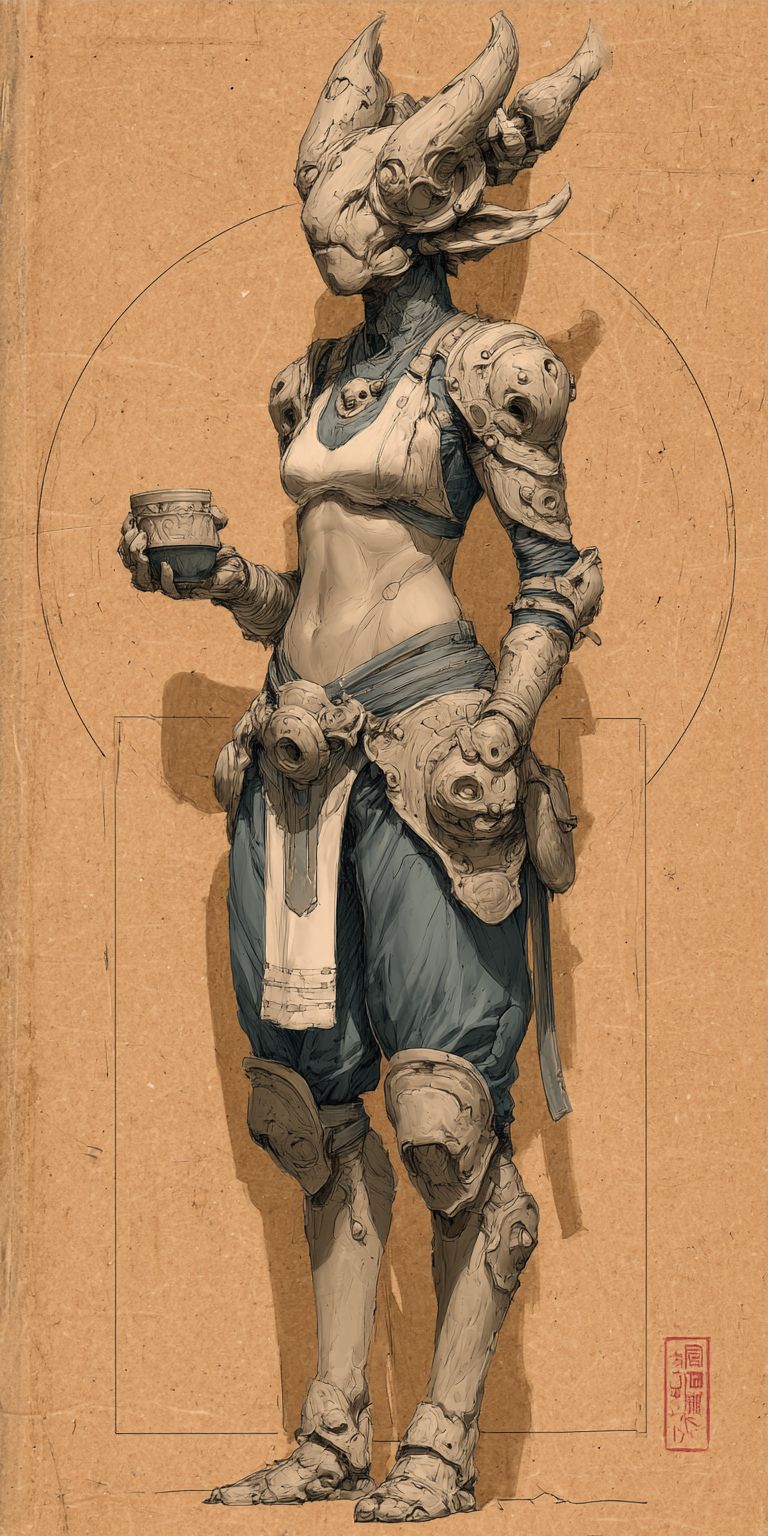 Full Body Shot and Nadir angle of an anthropomorphic female humanoid figure resembling a (ANIMAL). She wears (CLOTHING CHOSEN BY EACH ARTIST). She holds a (OBJECT) in one hand. The figure appears strong and muscular --ar 1:2 --s 1000 --v 7.0