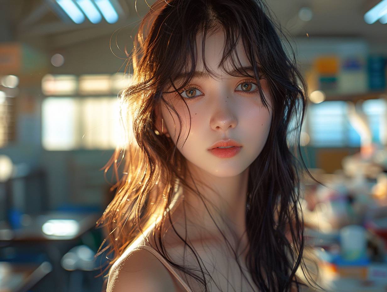 21 year old chinese girl, in school, beauty, long black hair, sun light, insane detail, smooth light, real photography fujifilm superia, full HD, taken on a Canon EOS R5 F1.2 ISO100 35MM --ar 4:3 --s 750 --v 6.0