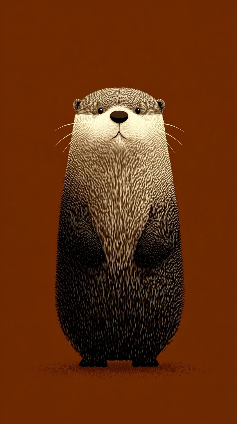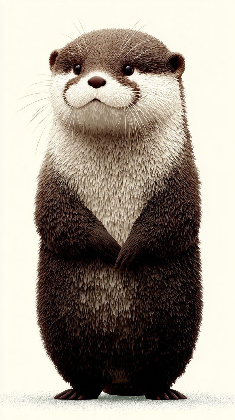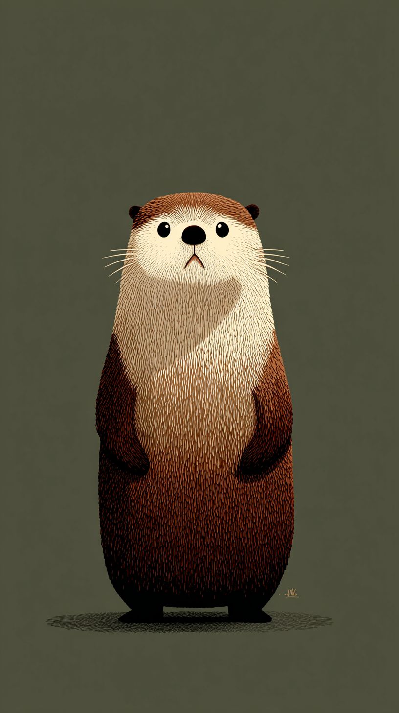 In Kawaii style, minimalist, super cute, abstract, head to body equal ratio, Otter, male, standing, in the style of simplified, colorized, creative commons attribution, cut and paste, dignified poses, flat shapes, canine-core, ar 5:4 --ar 9:16 --raw --s 750