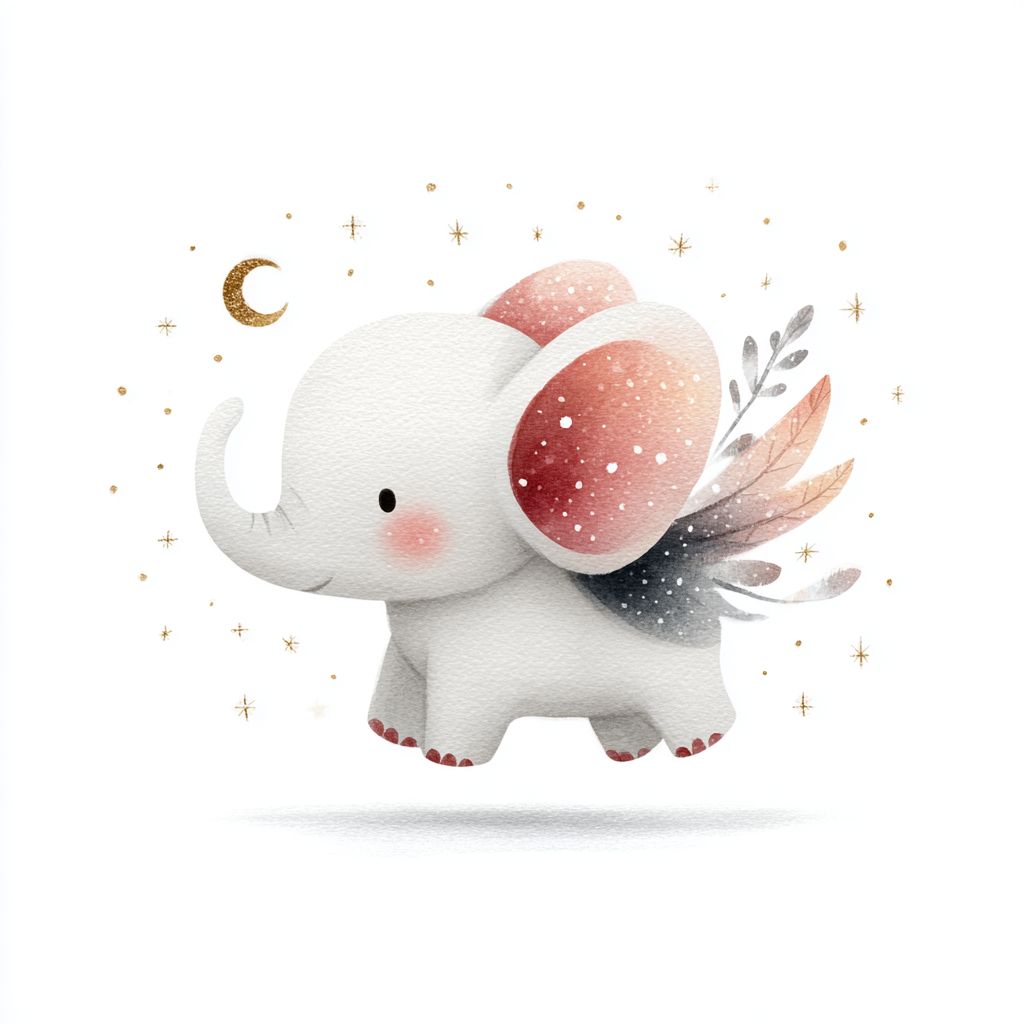 Uma ilustração de um elefante voador fofo