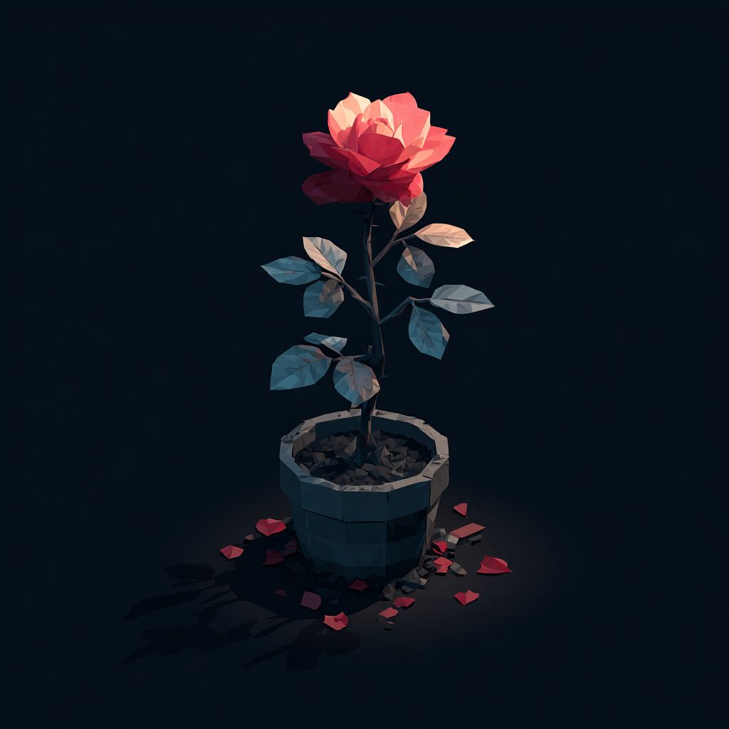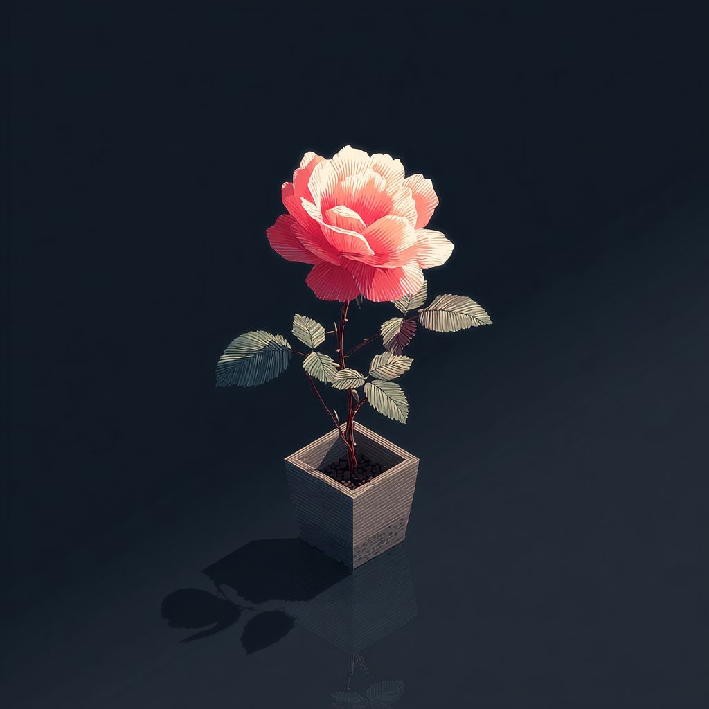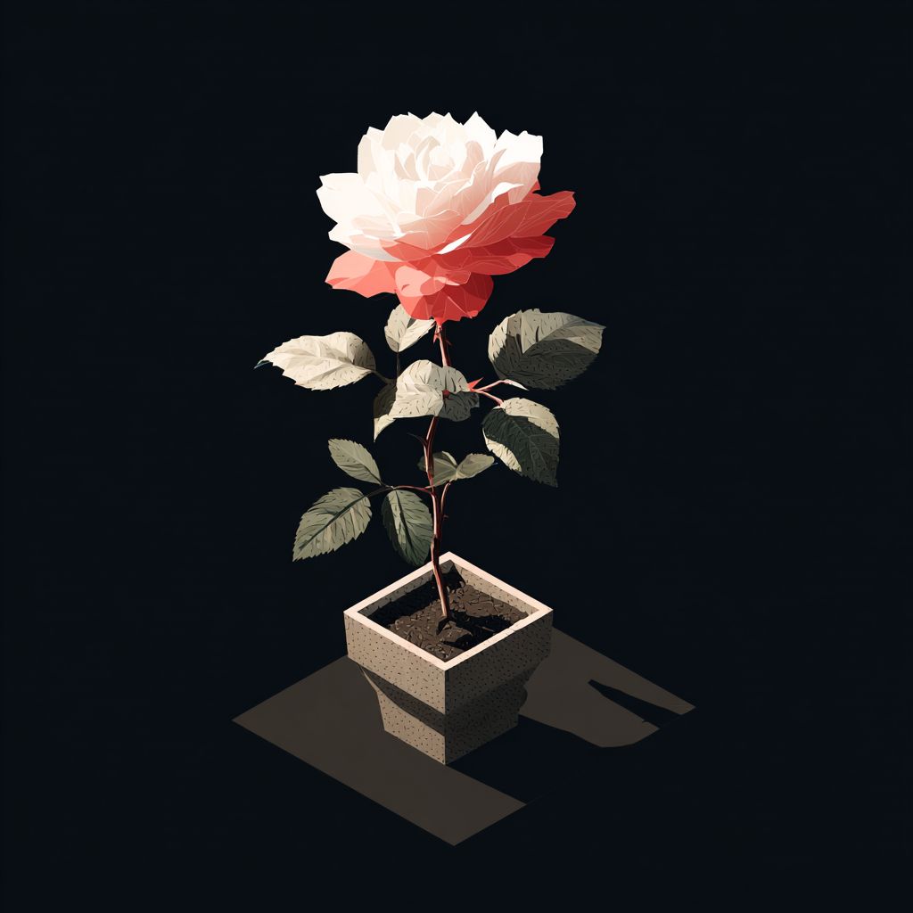 Um ícone gráfico vetorial simples de uma rosa em um vaso