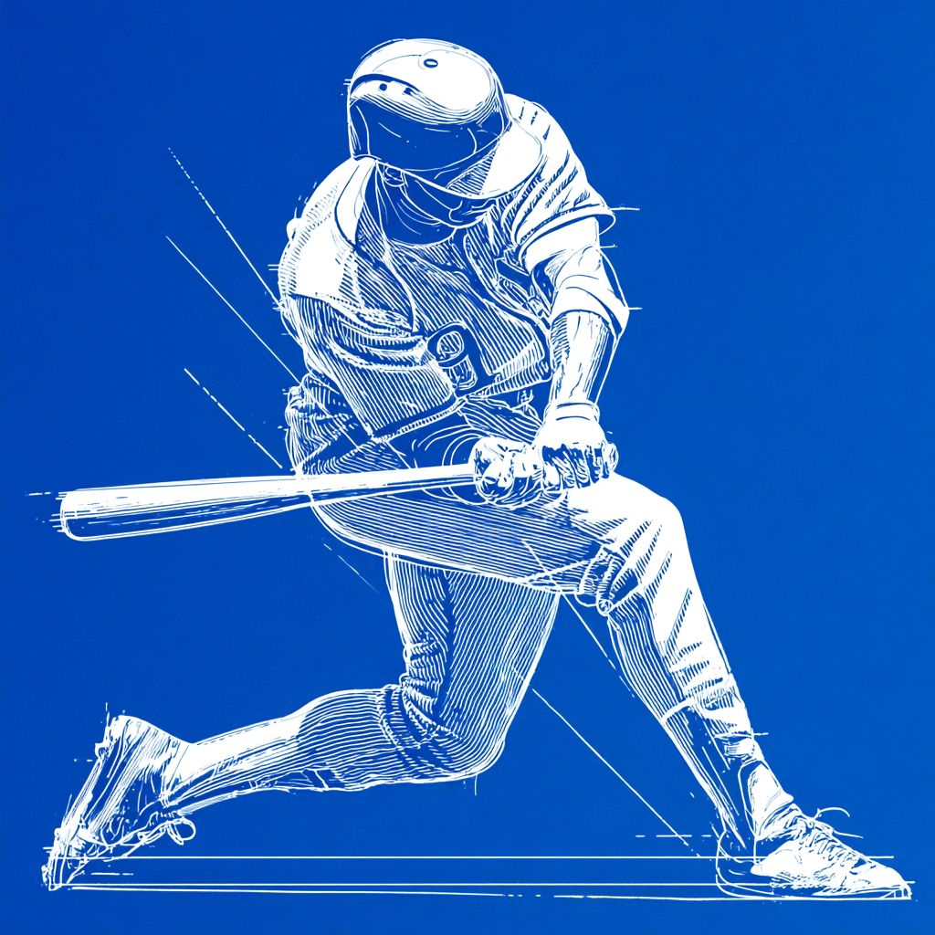 O logotipo é um desenho simples em linha branca sobre um fundo azul brilhante, retratando um jogador de beisebol que se assemelha a Barry Bonds. O design gráfico vetorial plano é minimalista e simétrico.