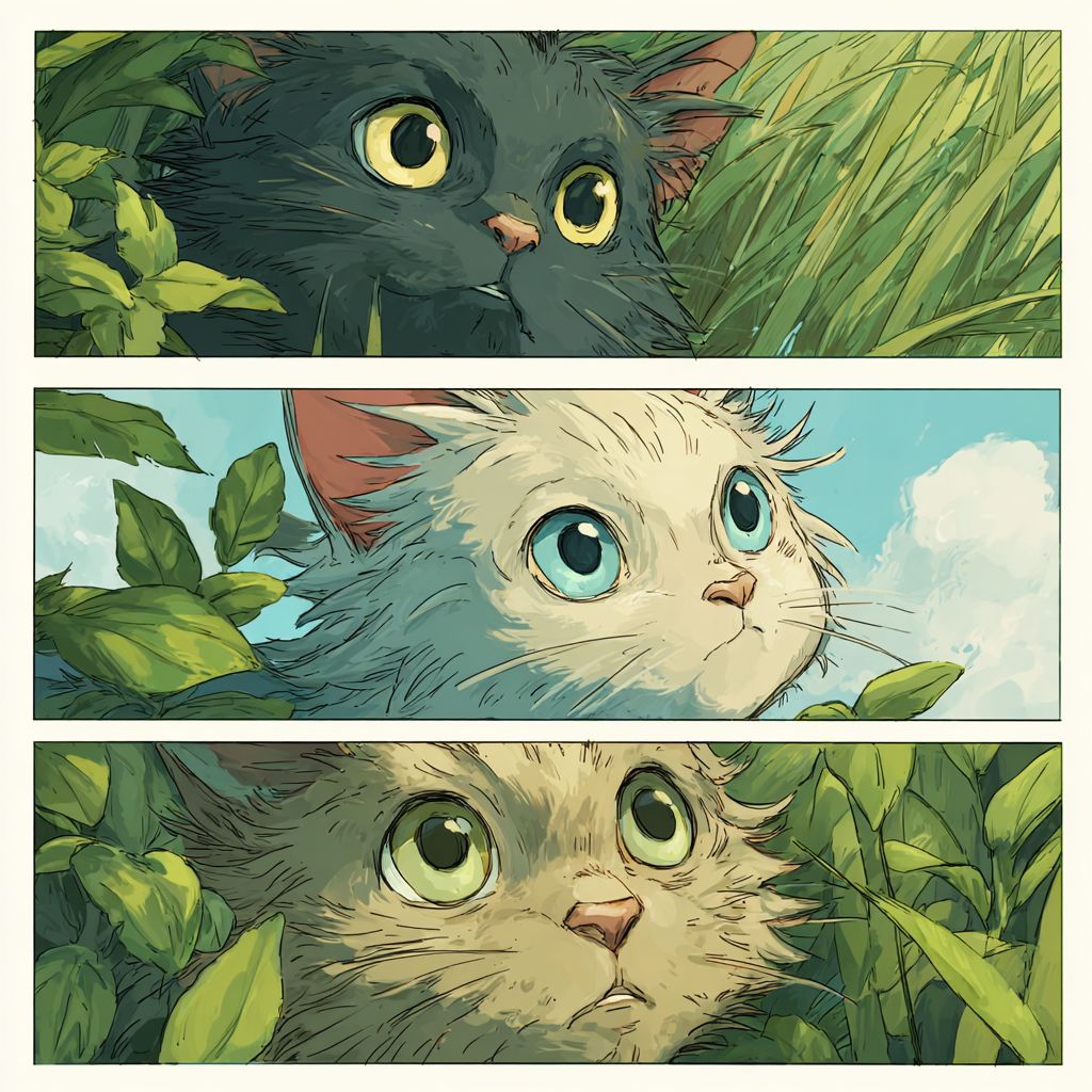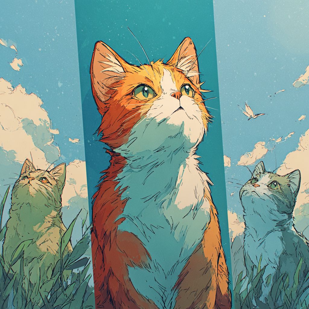 Crie um marcador estético com gatos no estilo Ghibli
