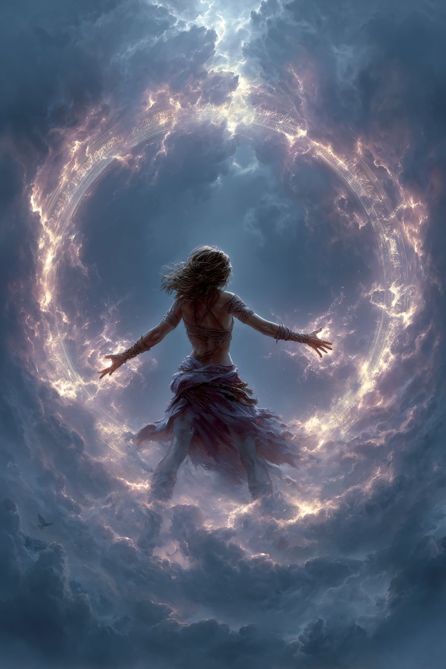 A fantasy sorceress casting a spell in a glowing rune circle, stormy sky with swirling clouds, dynamic pose, hyper-detailed, epic fantasy style, vibrant magical effects --ar 2:3 --v 7.0 --s 750