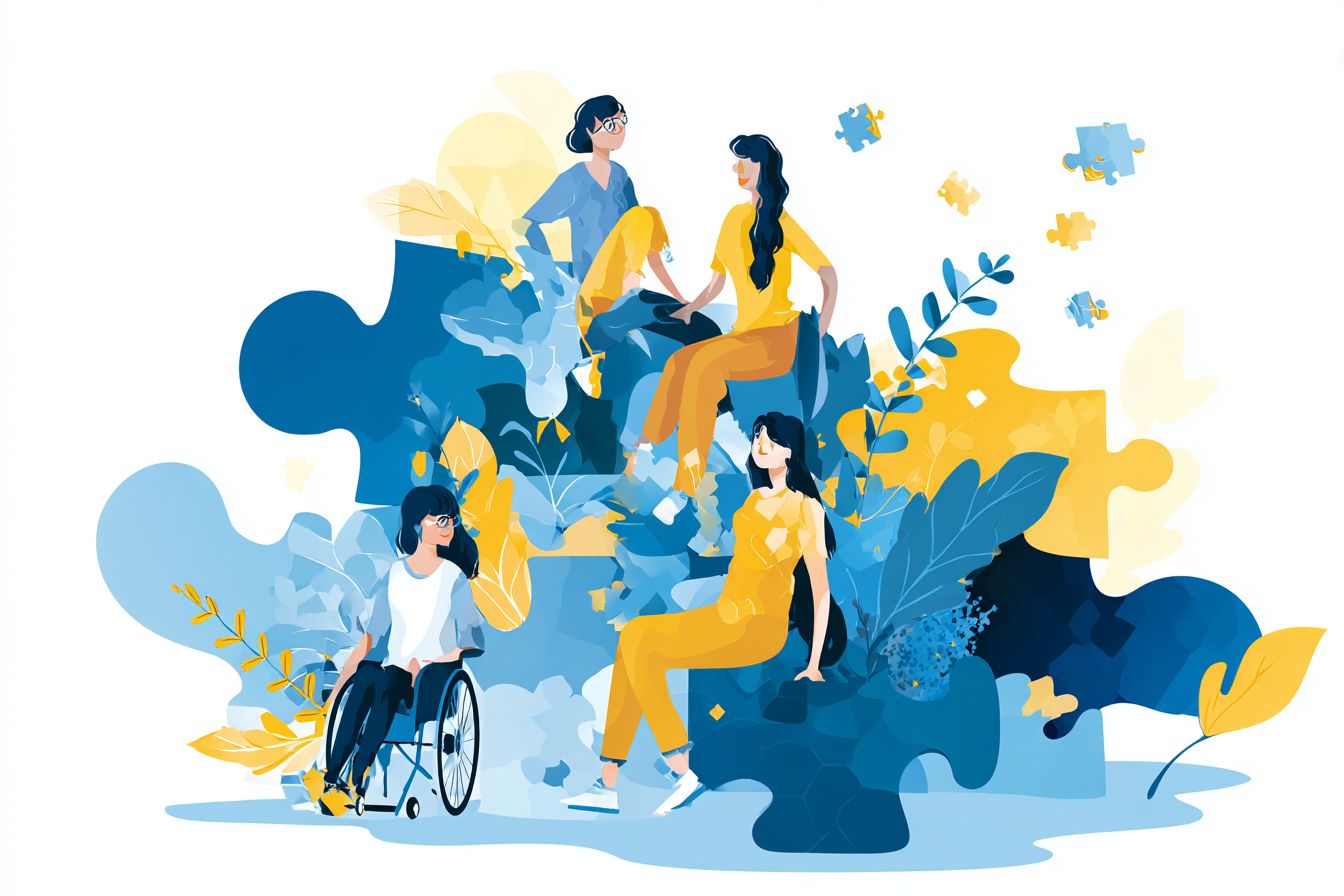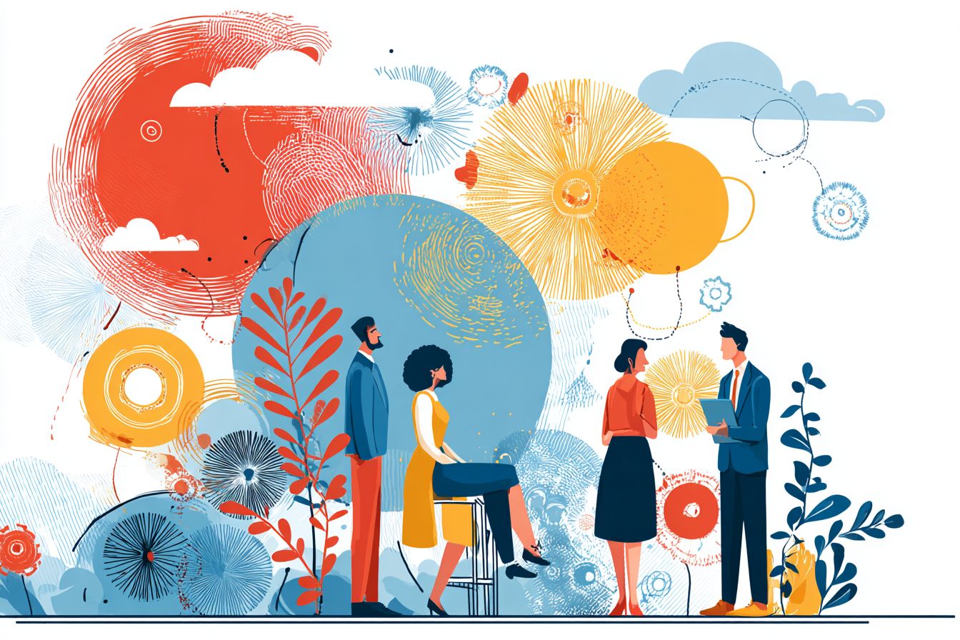 Crie uma arte vetorial no estilo clipart sobre o tema de integração, participação e inclusão