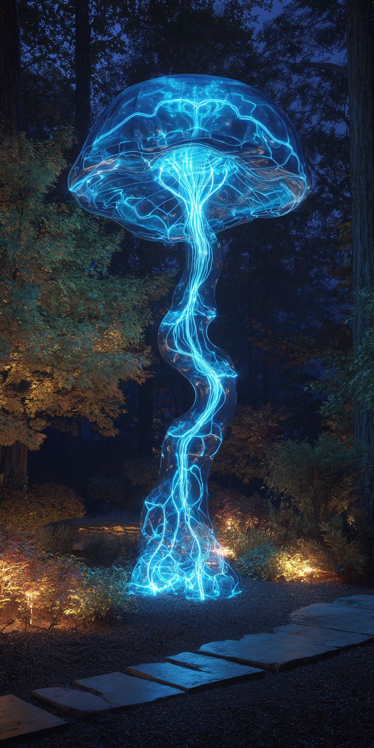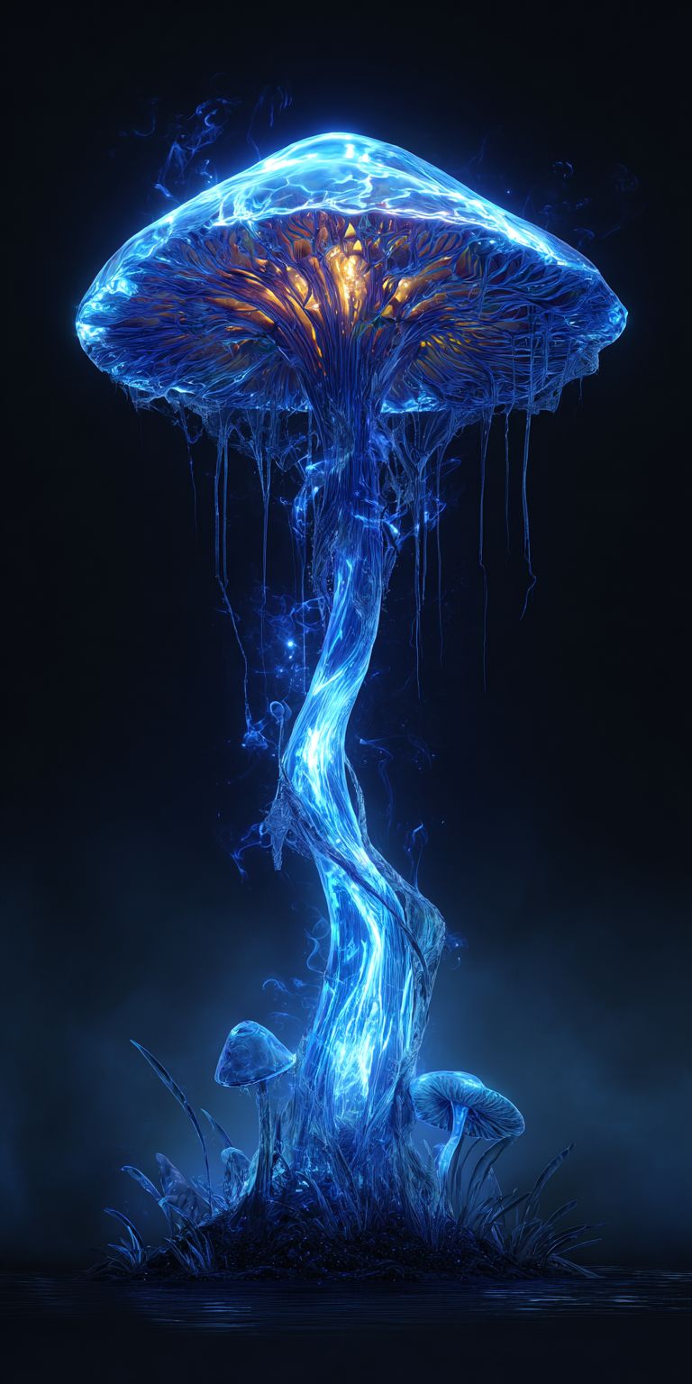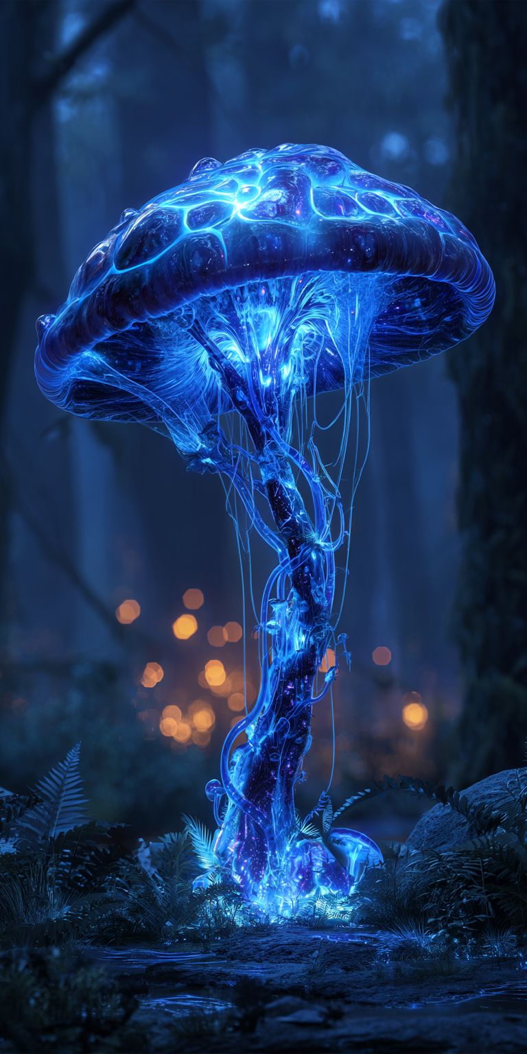 Tall blue glowing mushroom --ar 1:2 --profile 5q68nyr --v 7.0