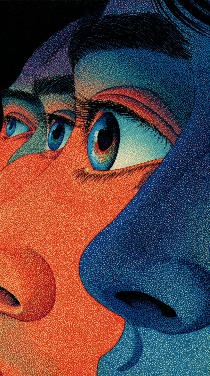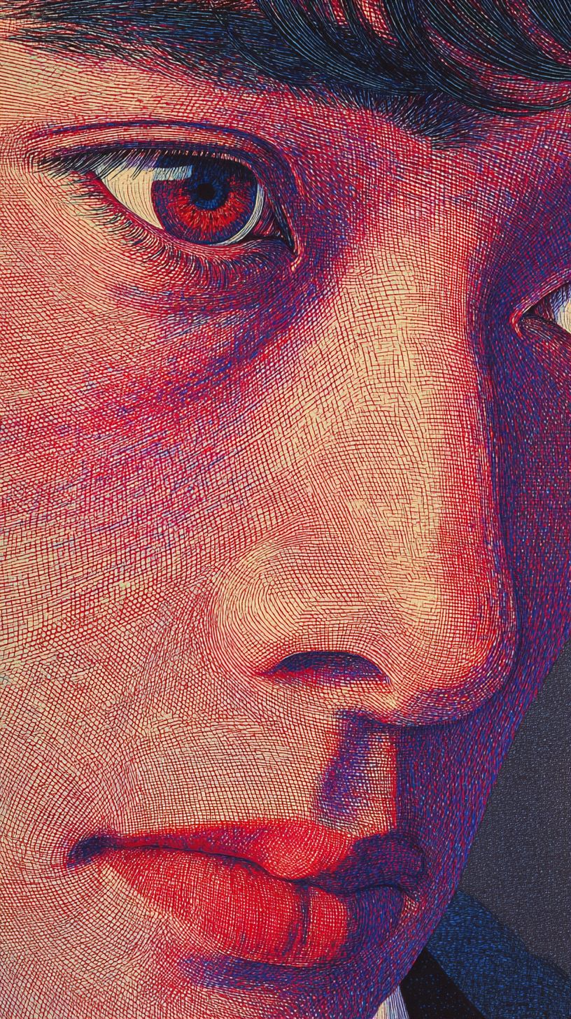 Close-up de belos olhos masculinos exibindo cores vibrantes e retratos estilizados
