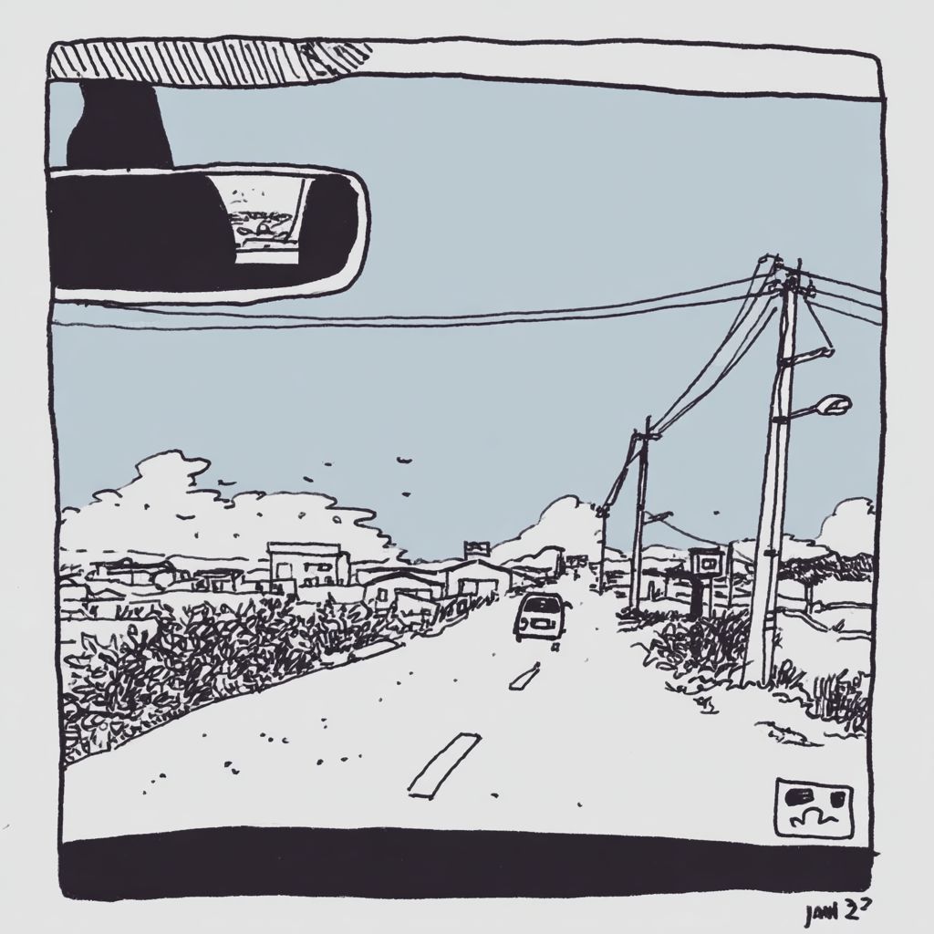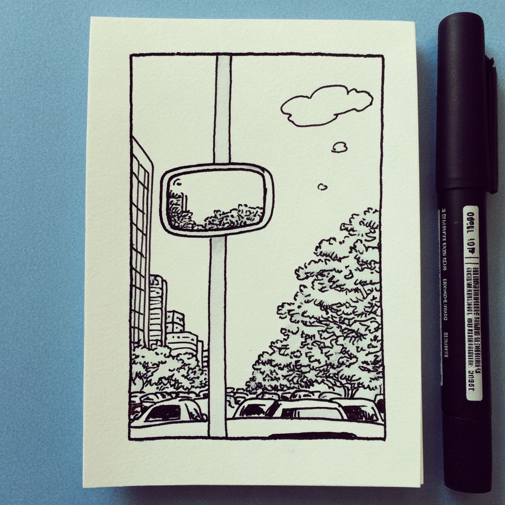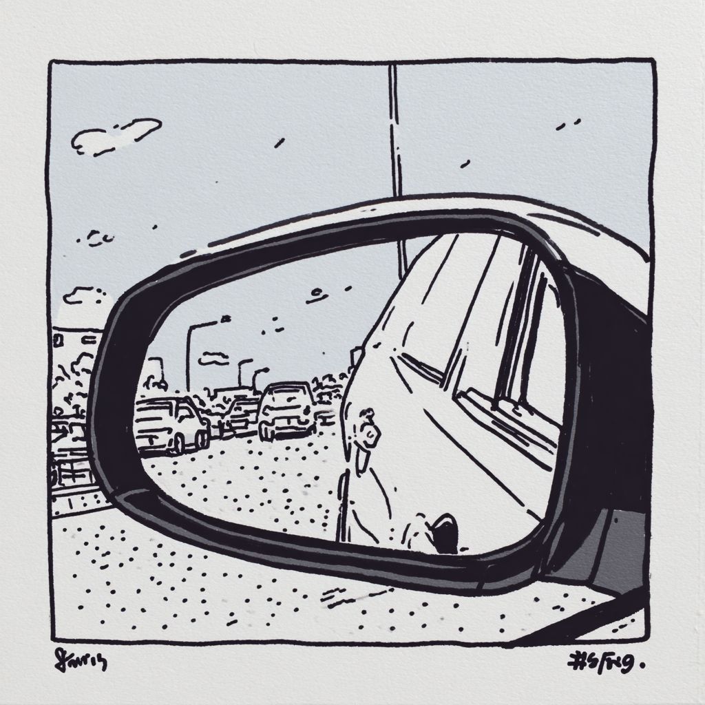Desenho simples de um espelho retrovisor de carro com um marcador