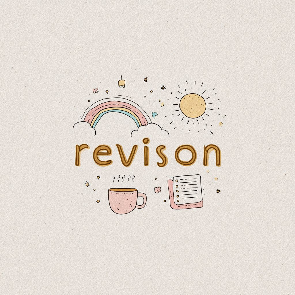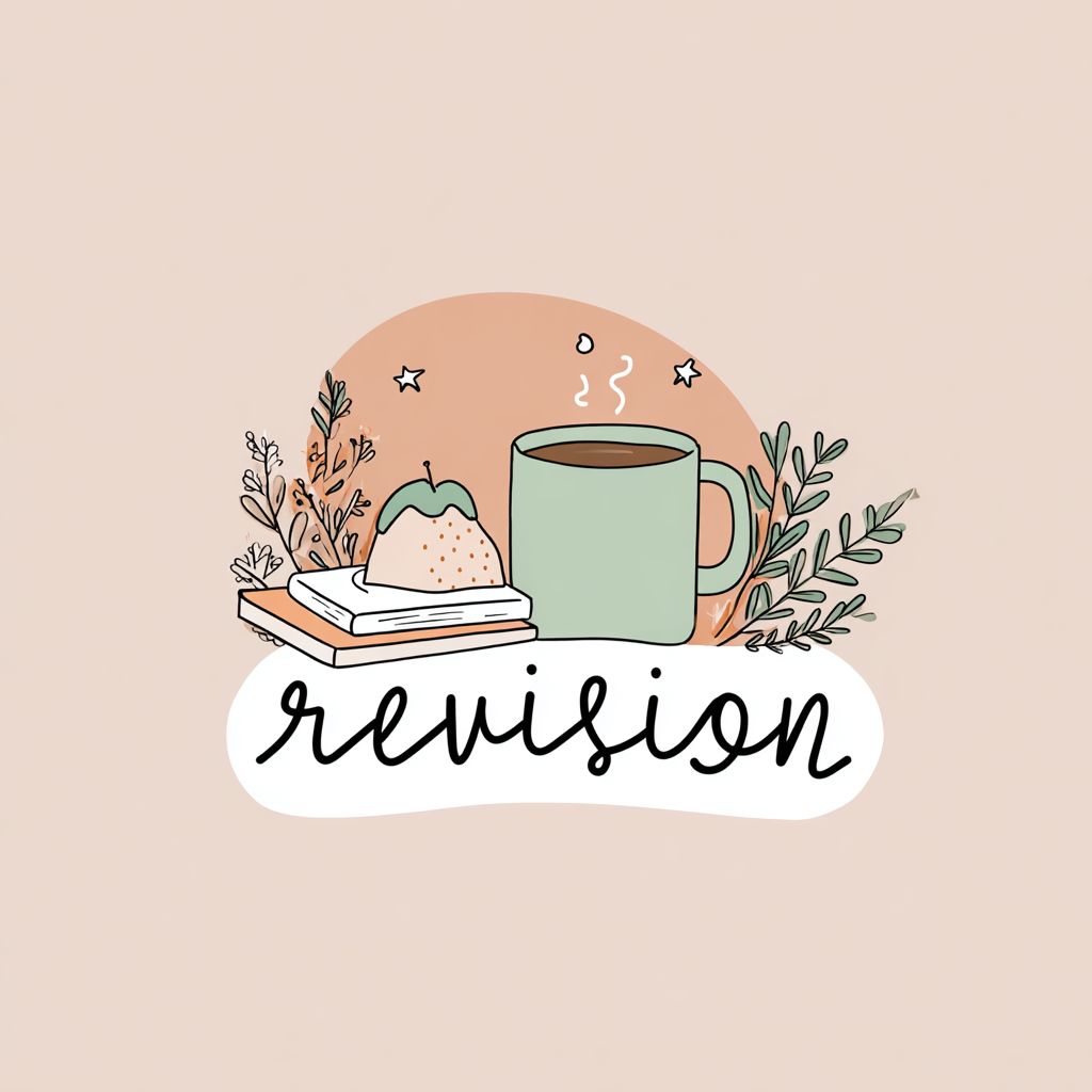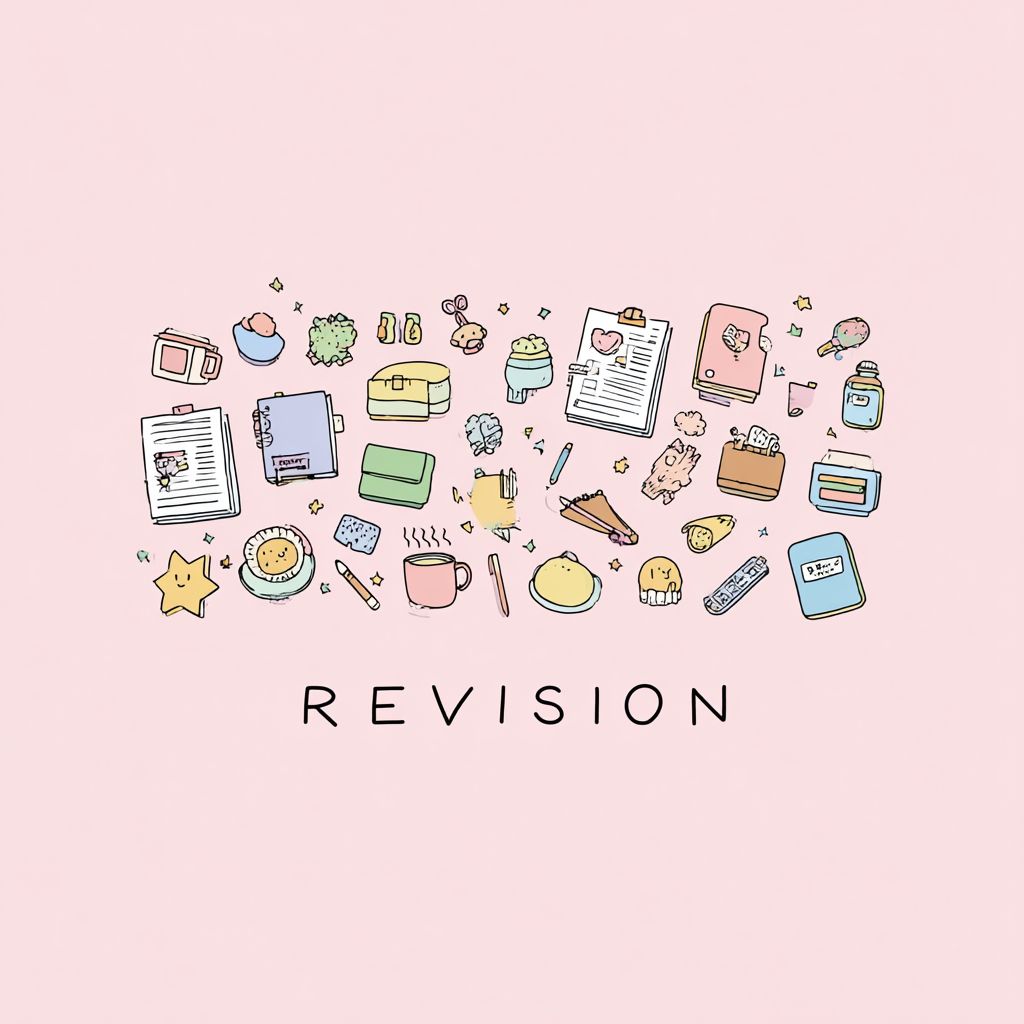 an image that represents "revision" in popular bullet journal style, minimalist doodle aesthetic, clean lines, soft pastel accent, cozy and whimsical, suitable for a product, no background, high resolution, vector-like clarity --chaos 5 --stylize 50 --v 7.0