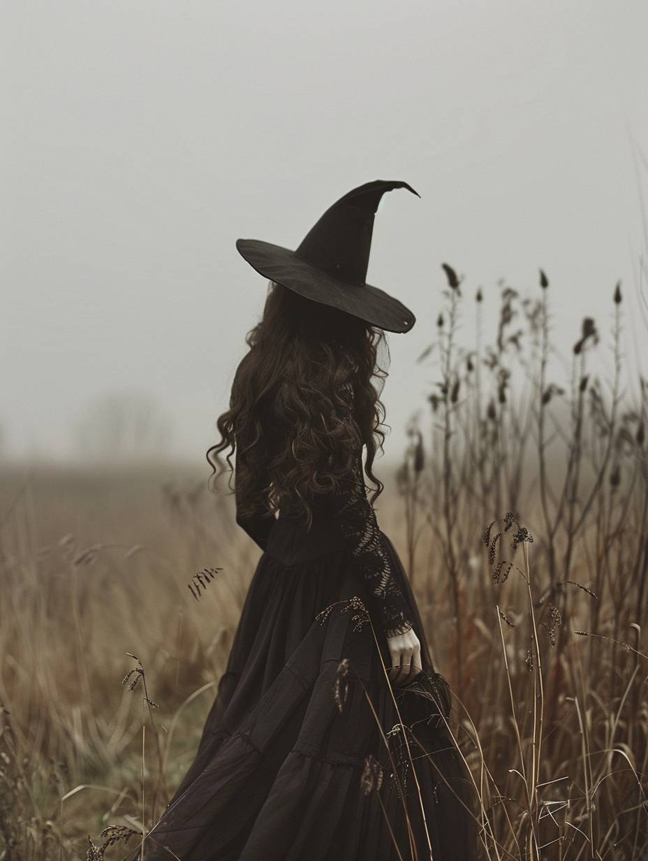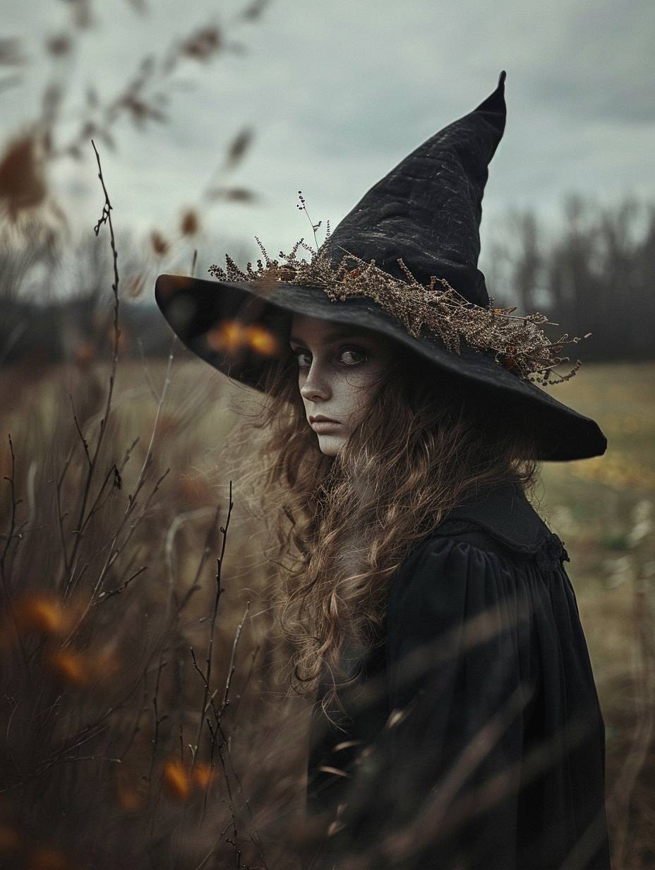 Bruxa, estilo surrealista de fotografia conceitual, paleta suave