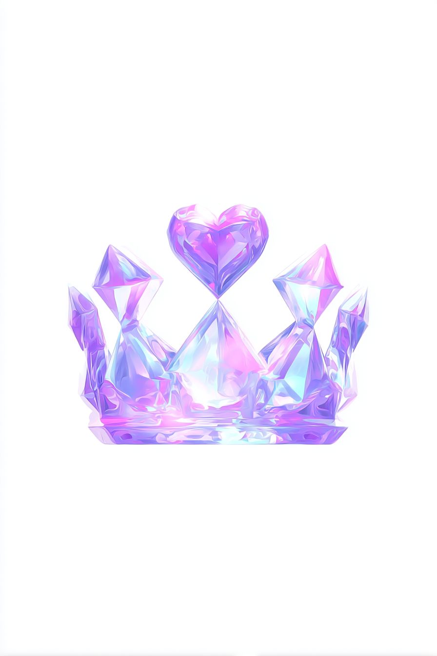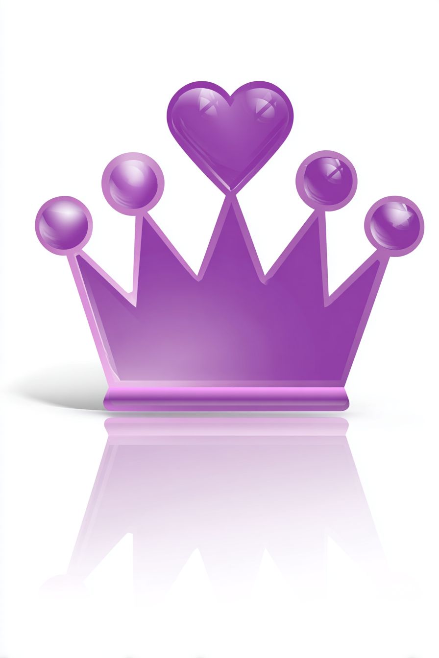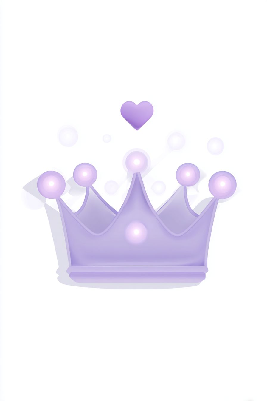 An icon for crown in purple tones, three-dimensional, around it and make them transparent with light effects inside, use a white background and add a heart. --ar 2:3 --raw --profile qelb2dd --stylize 50 --v 7.0