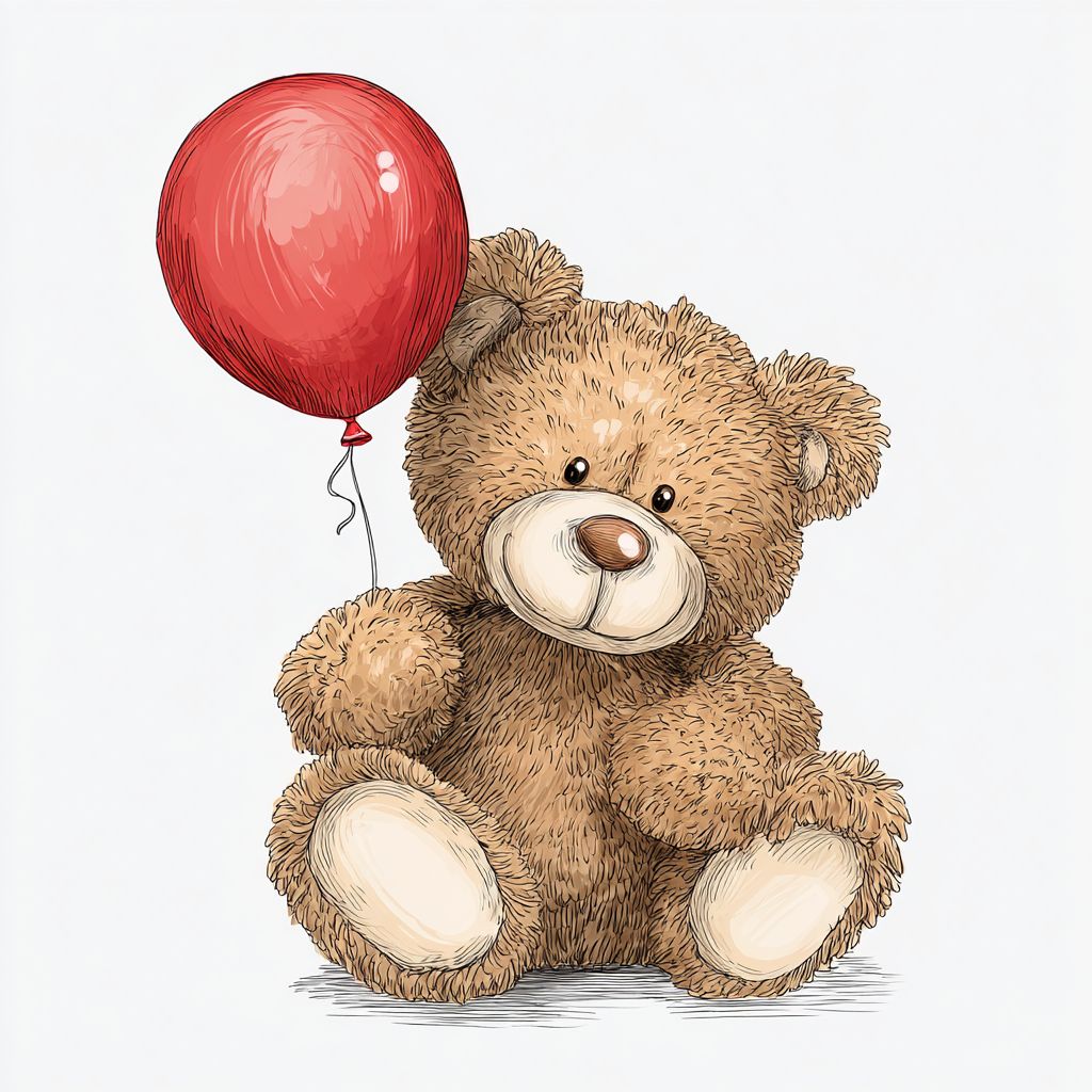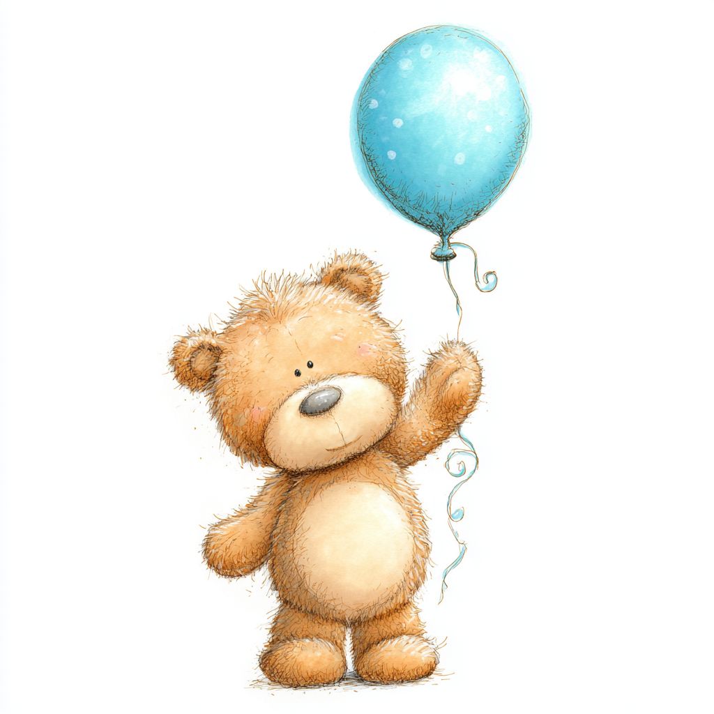 Logotipo de urso de pelúcia segurando um balão de aniversário em cartoon