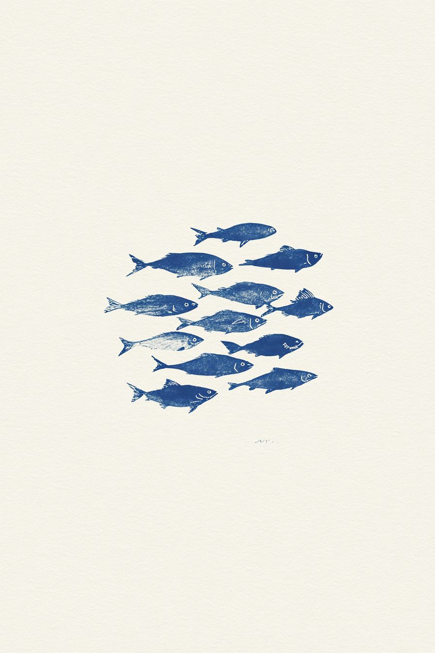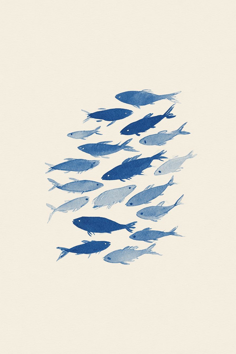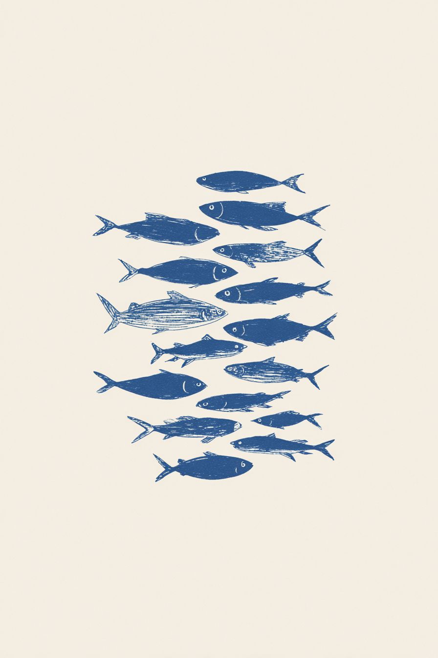 This minimalist fish poster captures the beauty of the ocean with a striking school of fish design in deep navy blue. Perfect for coastal homes, beach houses, or nautical-inspired interiors, it brings a modern yet natural touch to your wall decor. Whether hung in a living room, bathroom, or holiday retreat, this ocean-themed print makes a thoughtful gift for sea lovers and those who find peace by the water. --ar 2:3 --profile lazxhds