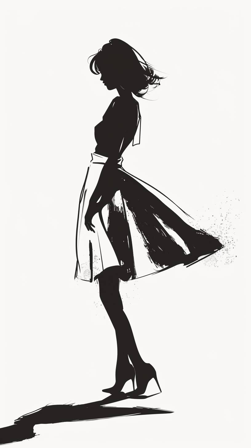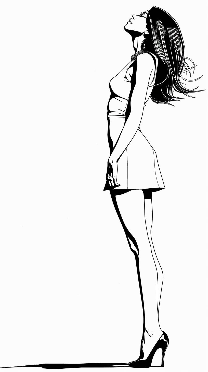 Ilustração de uma mulher em corpo inteiro de lado em um fundo branco puro