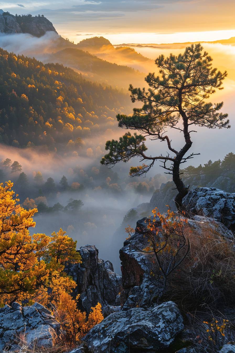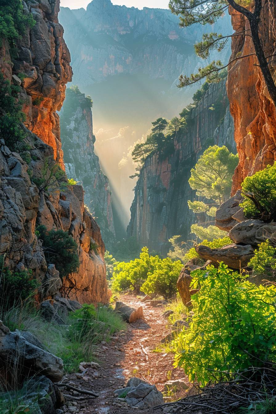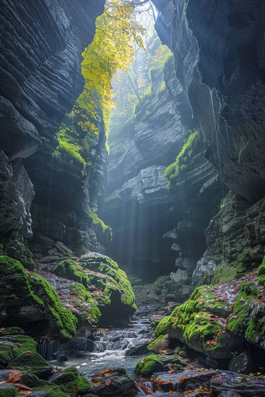 Capture an image that crystallizes the raw, majestic beauty presented in Earth's untouched landscapes. The photograph should depict a vista filled with geological formations, intricate patterns of plant life, morning dew on foliage, or a powerful atmospheric phenomenon. Use natural lighting to emphasize the colors and textures within your frame, showcasing the stunning interplay between light and shadow, as seen in the undulating crests of a mountain range. Seek to narrate a story of our planet's natural artistry through your composition, guiding the gaze across a balanced harmony of environmental wonders. At the same time, with infinite attention to detail, reveal unseen facets of these spectacles to draw out their fragile beauty and stir profound awe. The ultimate goal is an emotional connection, a tribute to nature's ephemeral splendour, all captured with a hyperrealistic aesthetic. Weaved within your work should be a celebration of the power of photography to immortalise such moments. The image should feel as real as it is extraordinary, truly worthy of nature's grandeur. --ar 2:3 --stylize 250 --v 6.0