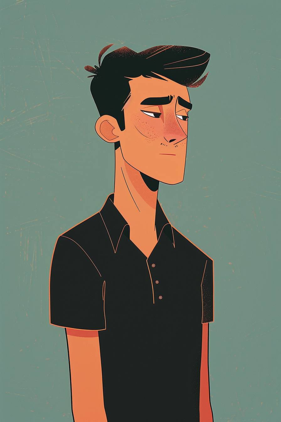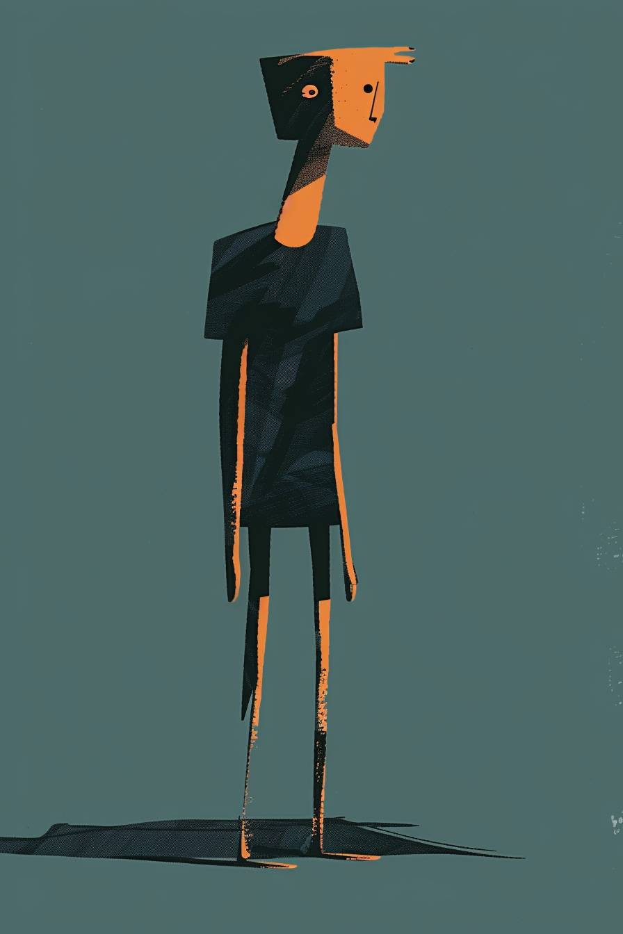Design de conceito de personagem no estilo de Jean Jullien, meio corpo