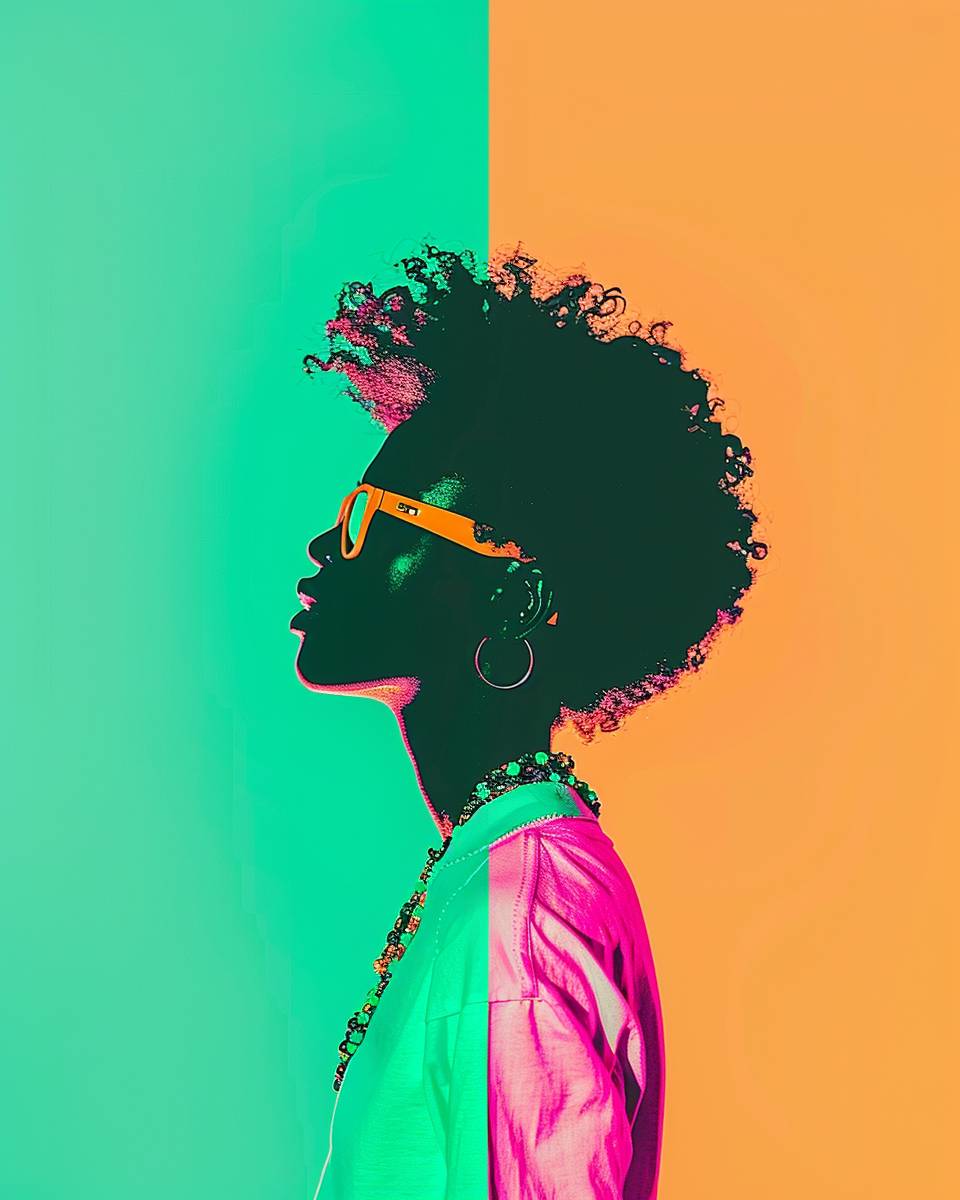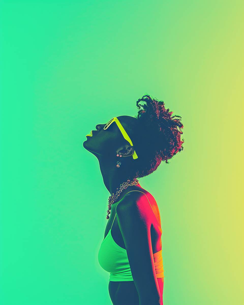 Neon Shadows: Dimmed lights, striking poses. Colorful silhouettes: Green and orange tones, fashion flair. --ar 4:5 --stylize 1000 --p b1oftln --v 6.0