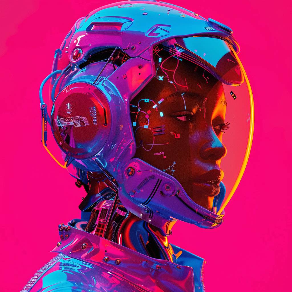 Ilustrações de alta tecnologia em estilo neo-futurista, ricas em cores e detalhes
