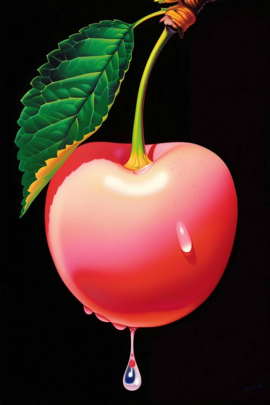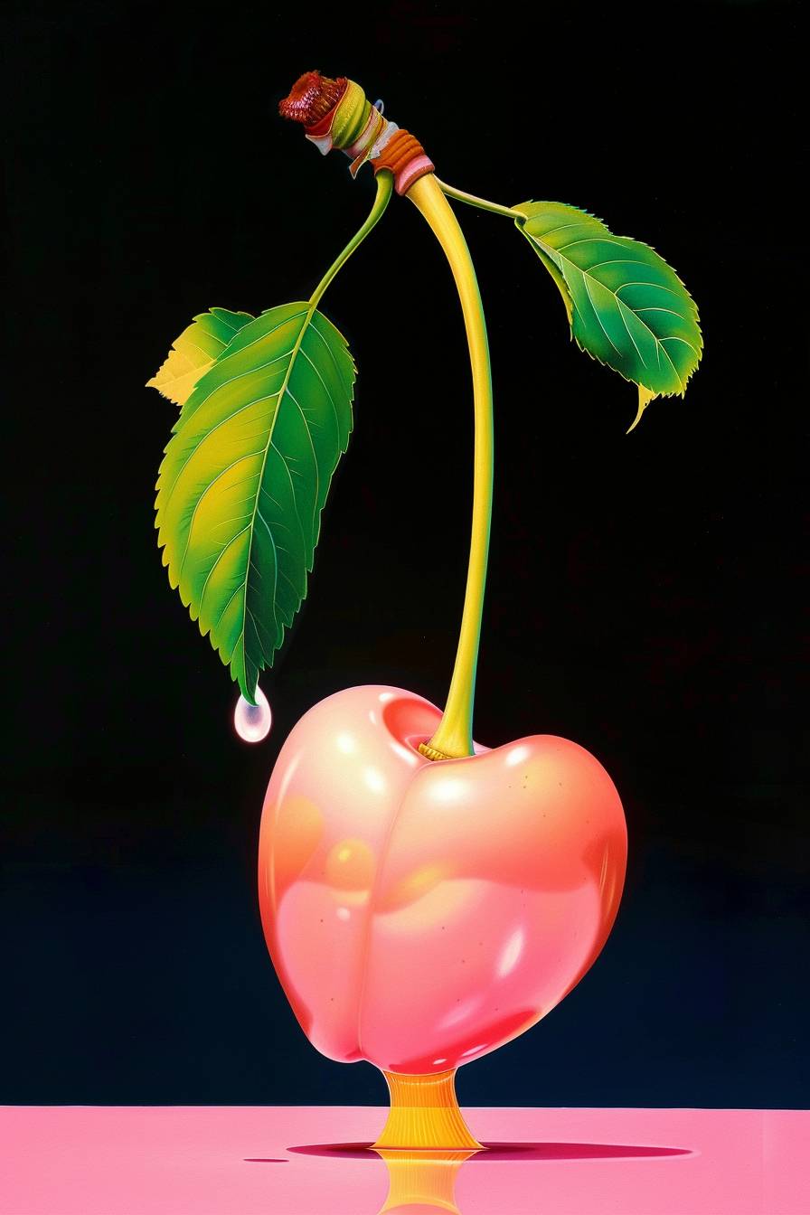 Uma foto hiper-realista de uma cereja rosa