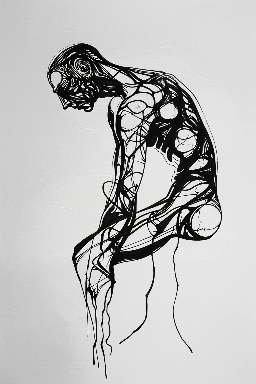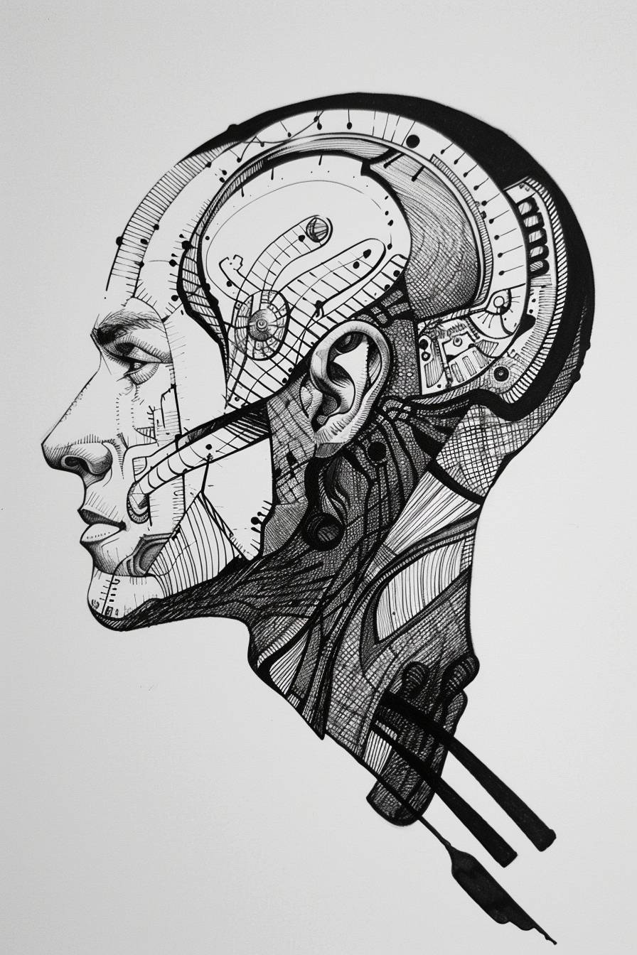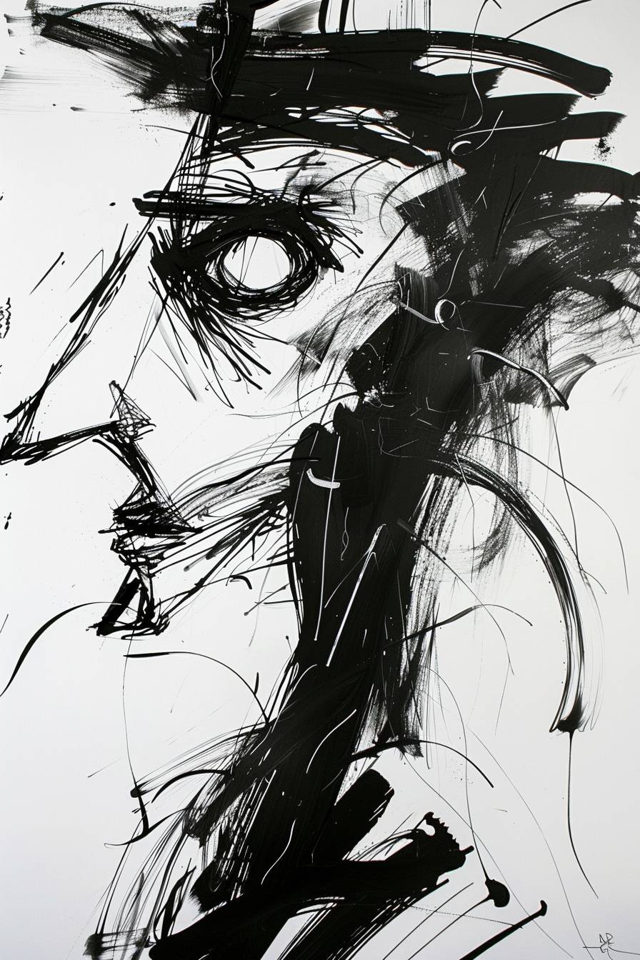 in style of Irving Amen, character, ink art, side view --ar 2:3 --v 6.0